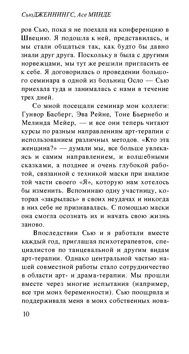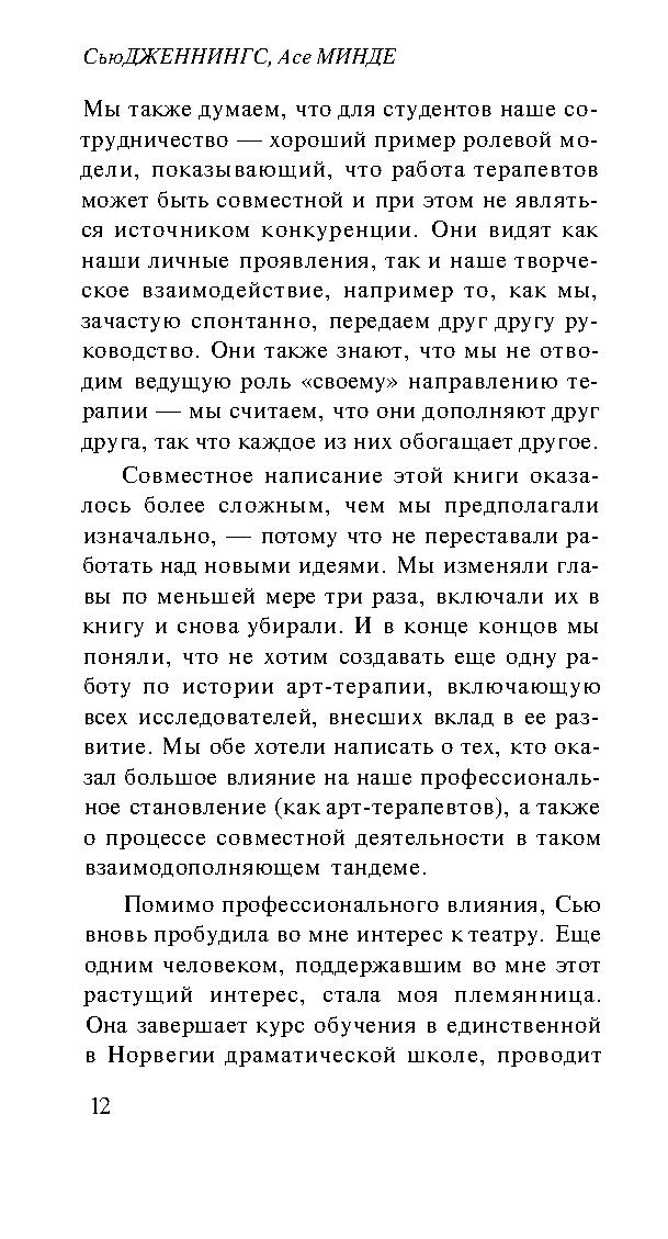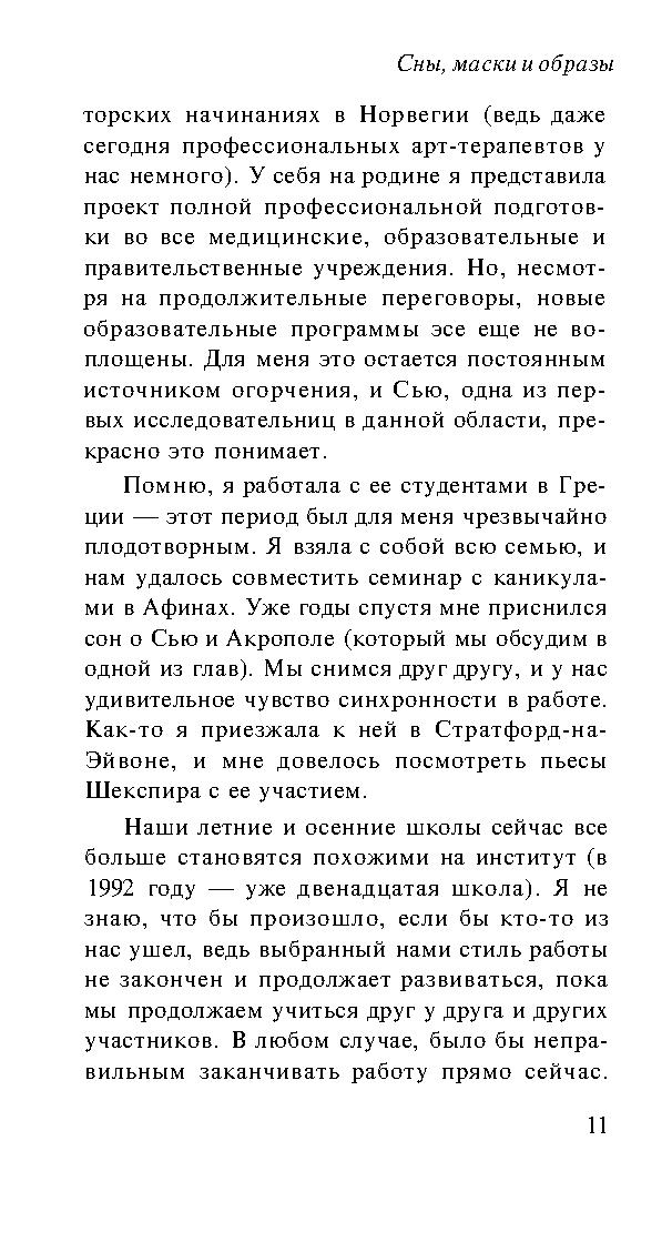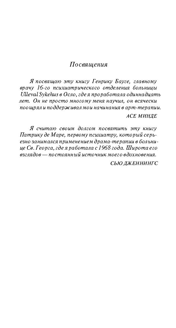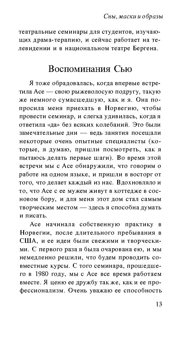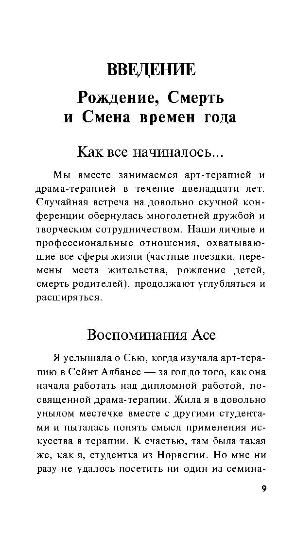 Эта книга, созданная двумя мастерами, будучи прежде всего пособием по арт- и драма-терапии, представляет собой не просто текст, а настоящее произведение искусства. Она не только сообщает сведения из теории и практики психотерапии, но питает и пробуждает воображение читателя. К этой книге следует обращаться не только за информацией, но и за вдохновением.