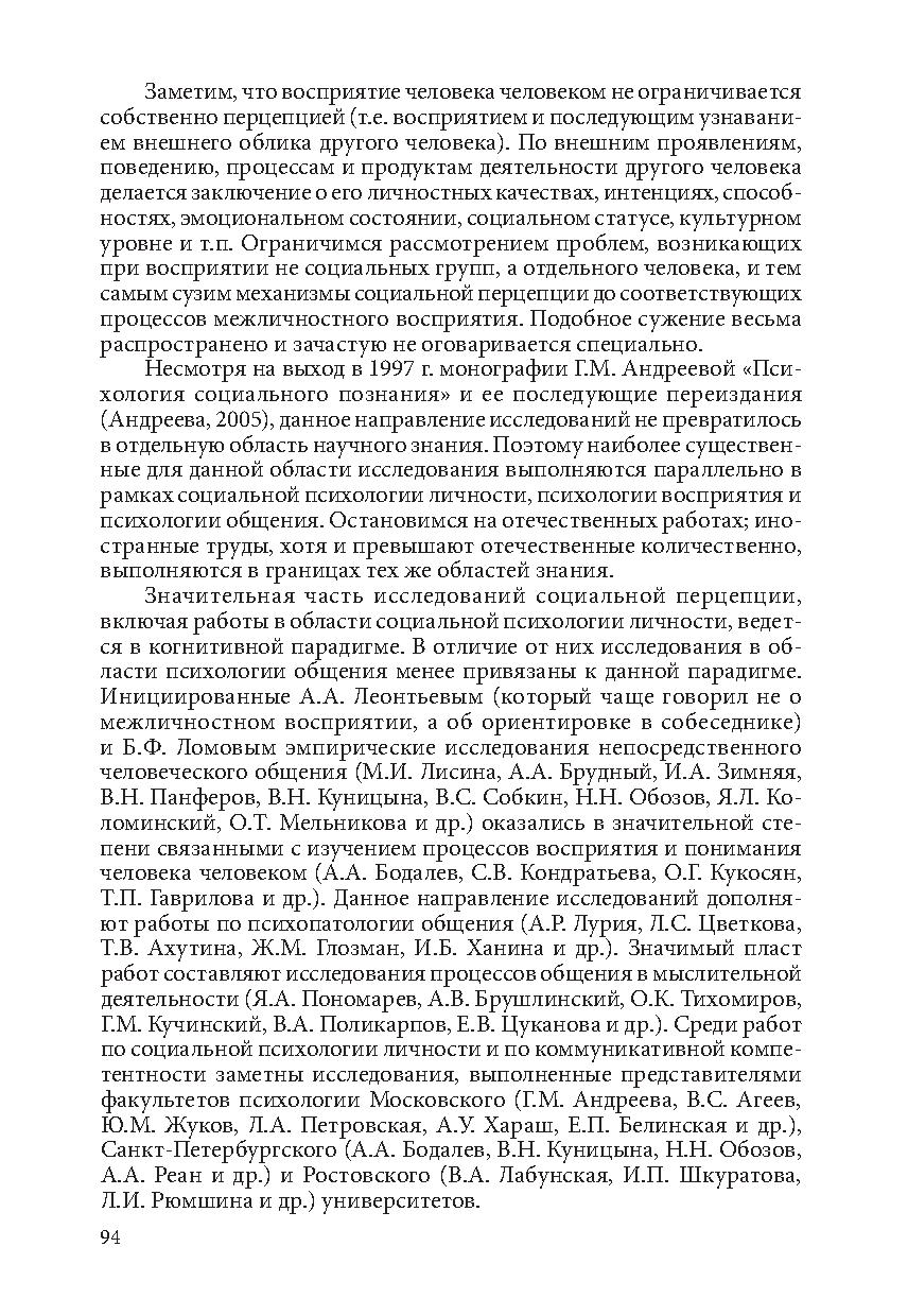 В статье дается обзор направлений отечественных и зарубежных исследований в области социальной перцепции (именуемой также восприятием человека человеком, межличностным познанием и др.).