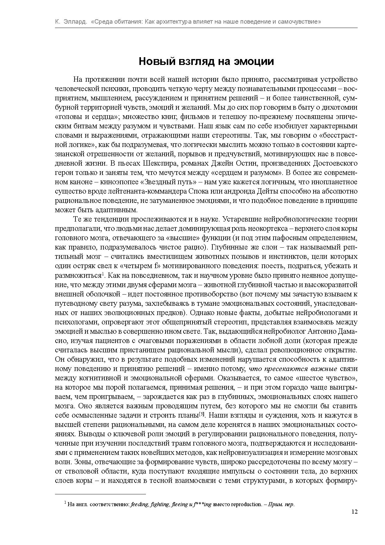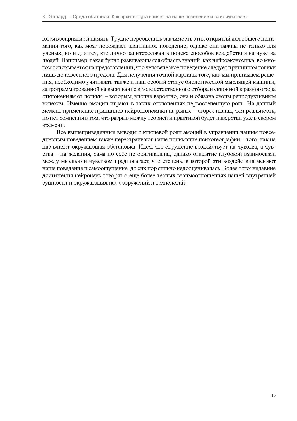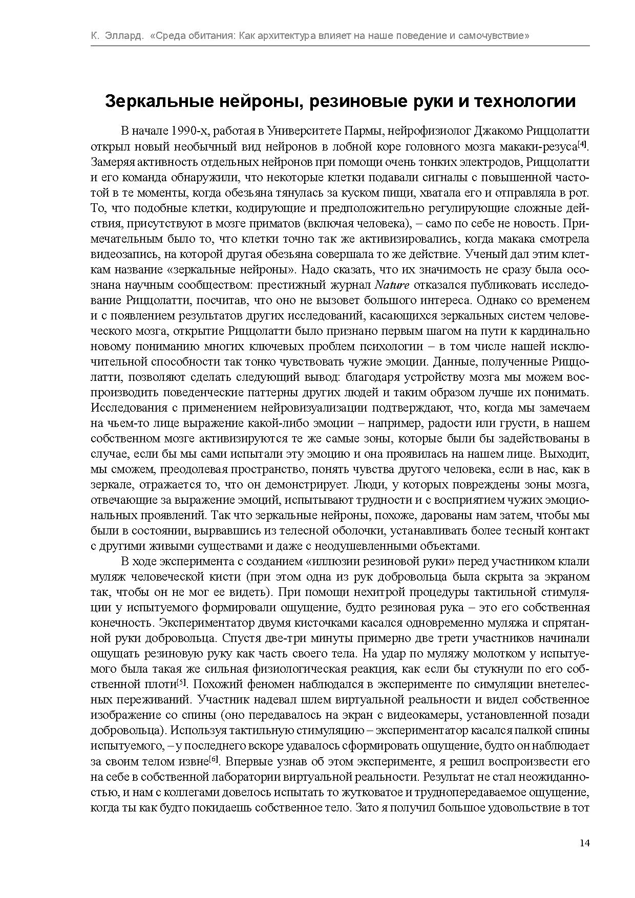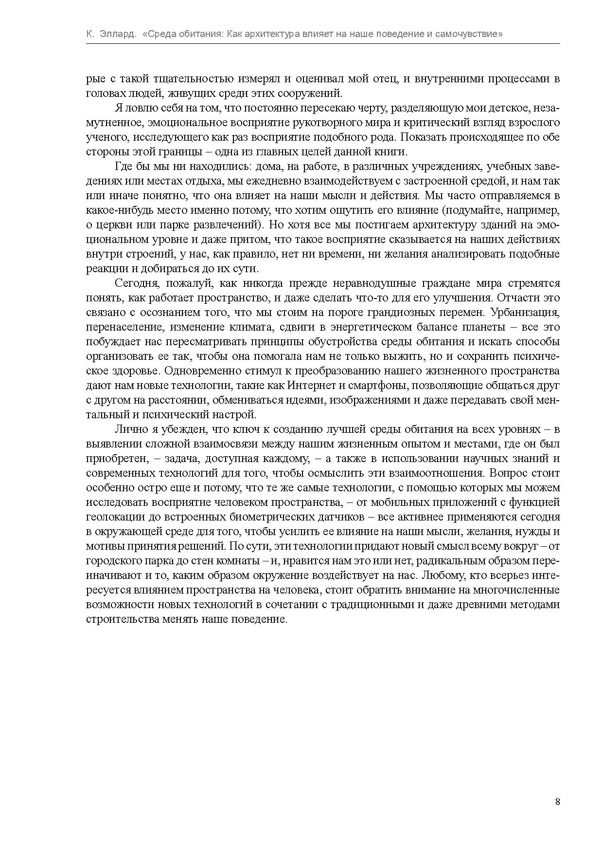Каким образом городская среда способствует развитию психических расстройств? Отчего вид ничем не примечательных скучных зданий вредит здоровью, а простые маленькие домики так притягивают нас? Хорошо ли жить в умном городе? Где лучше творить, а где работать до седьмого пота? Способны ли технологии изменить наши отношения с пространством?