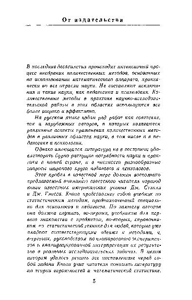 Перевод книги известных американских ученых Дж.Стэнли и Дж.Гласса представляет собой учебник по статистическим методам, предназначенный специально для психологов и педагогов.
