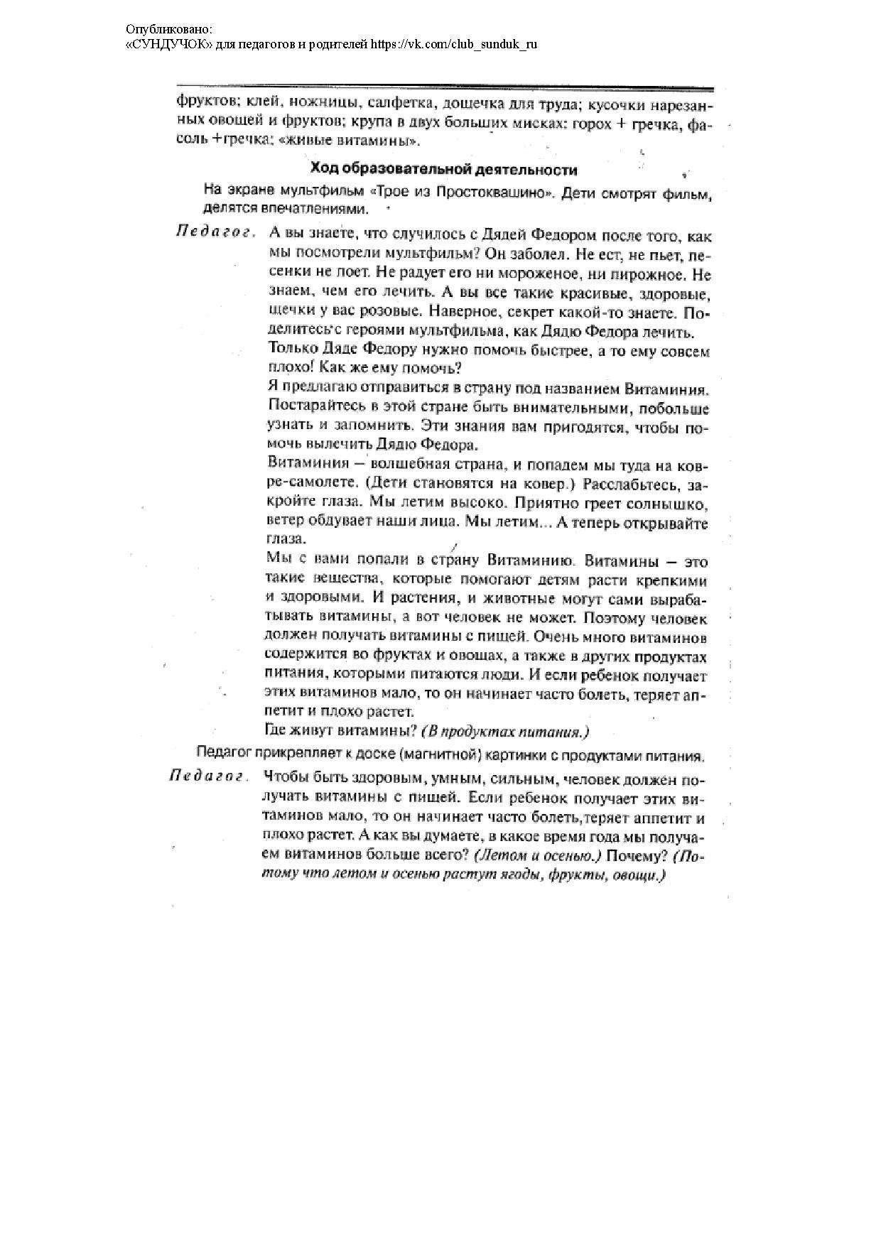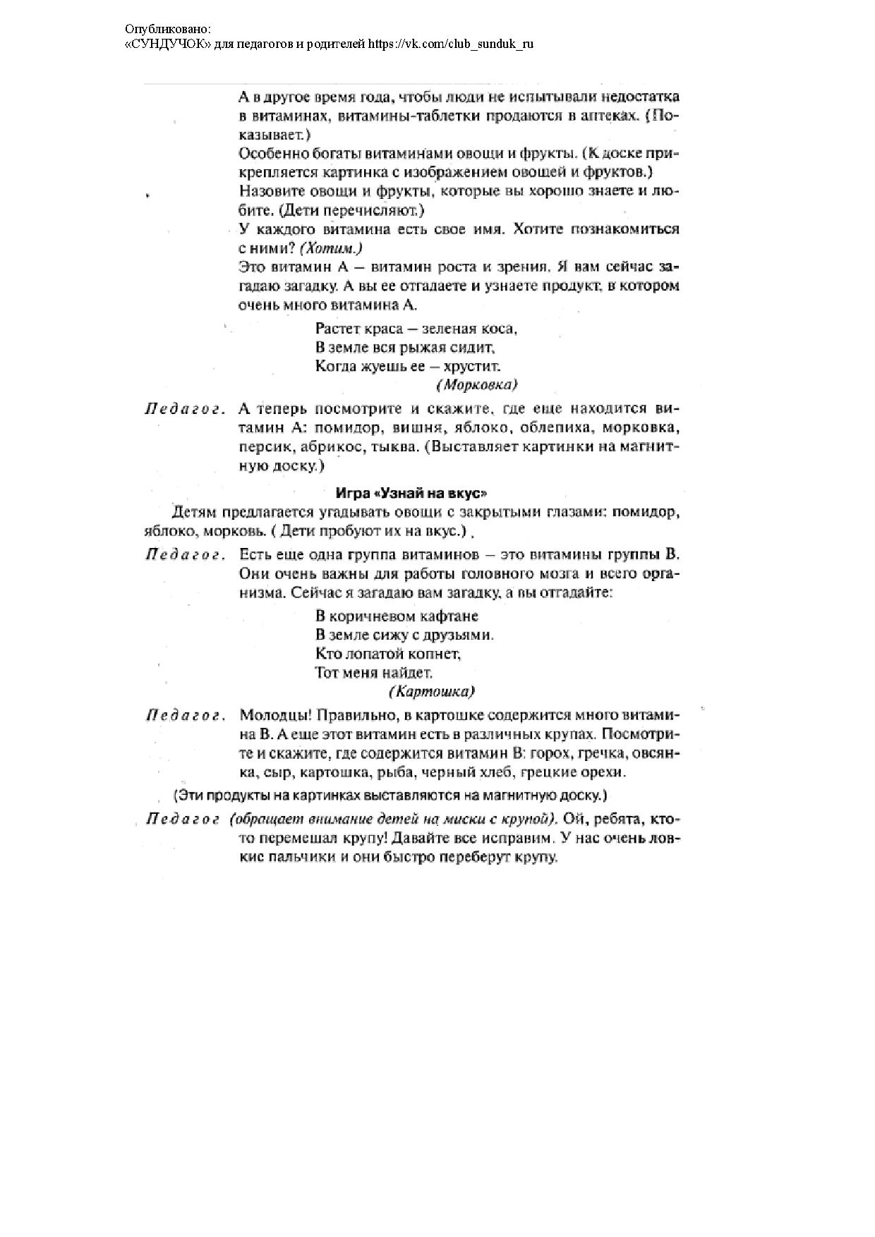 - формирование словаря (введение в активный словарь слов: витамины, здоровое питание);