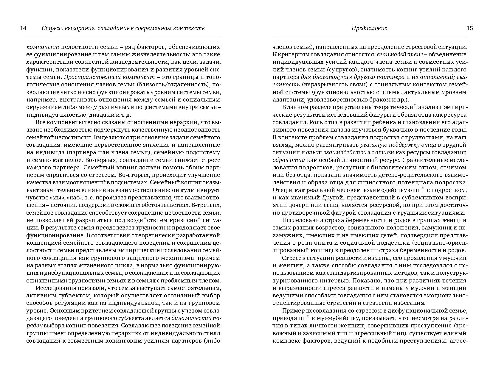 Коллективная монография «Стресс, выгорание и совладание в современном контексте» посвящена фундаментальному изучению актуальных проблем современного общества, стрессовая напряженность которого становится серьезным вызовом человеку, психическим ресурсам его жизнедеятельности и профессиональной реализации. Новизна данной работы определяется как междисциплинарной и системной методологией работы, пронизывающей все ее разделы, так и современными научно-методическими подходами к разработке проблемных зон психологической науки – изучению стресса, выгорания и копинга. Это теоретико-экспериментальное исследование проблем регуляции человеческого поведения, которое открывает новые перспективы, дает новые решения интенсивно разрабатываемых вопросов стресса, выгорания и совладания.