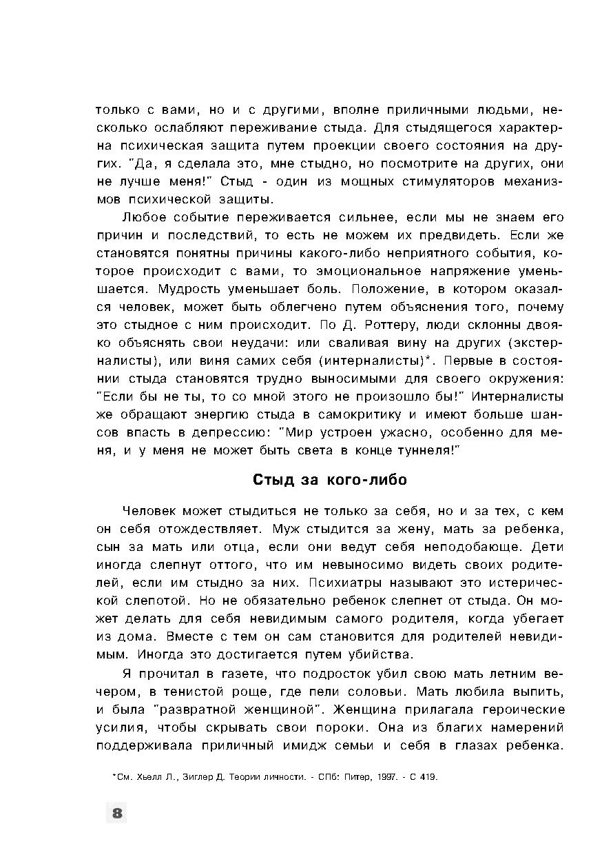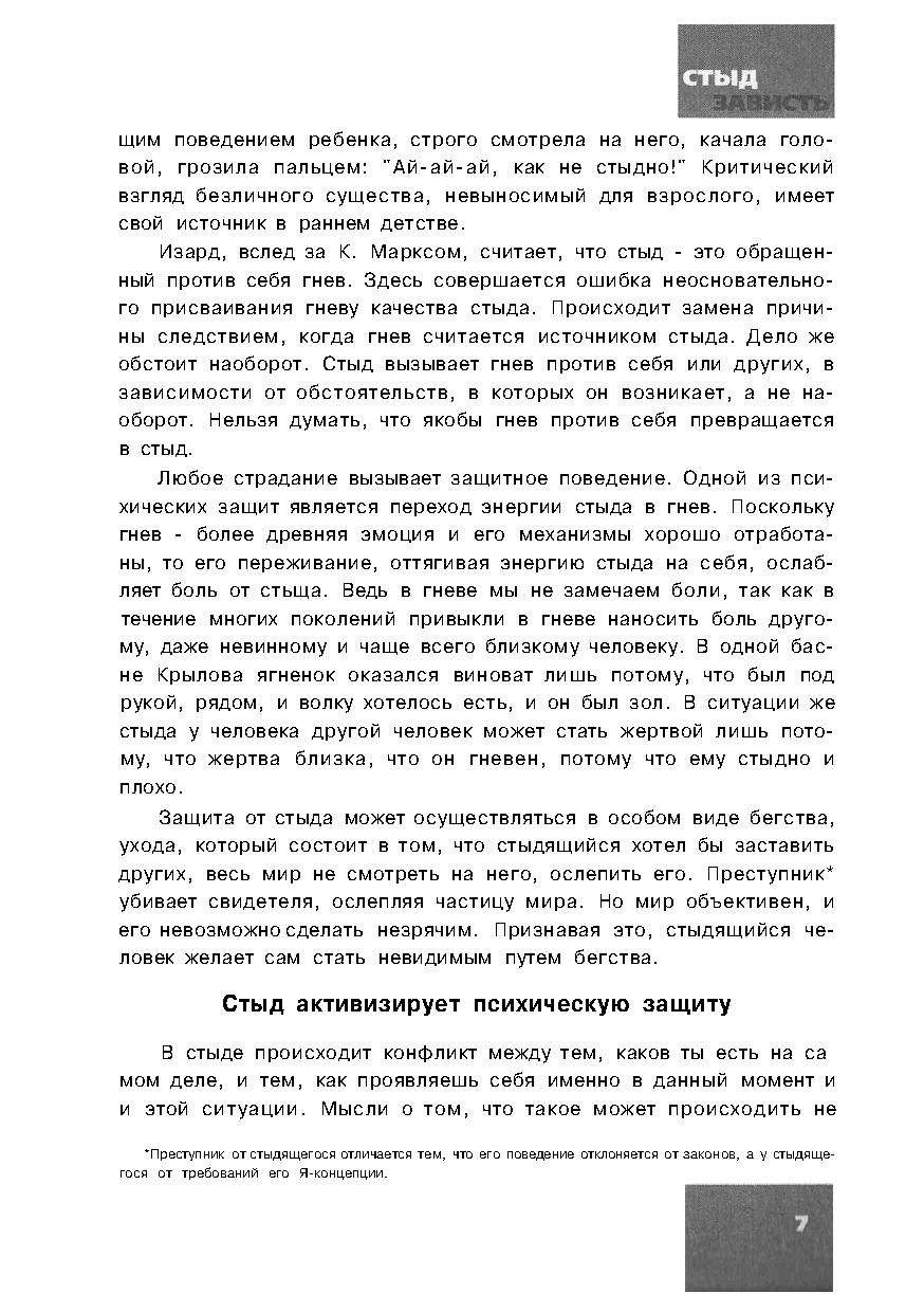 Четкое и конкретное "размысливание стыда" на основе специальных вопросов, разработанных автором этой книги, - надежный путь самопознания и различения того, каким человеку хочется казаться, и того, каков он есть согласно собственной Я-концепции. В работе с завистью описанная техника поможет выявлению тех черт нашего характера, на основе которых мы вовлекаемся в безжалостную гонку конкуренции между людьми в обществе, что может привести к потере индивидуальности.
