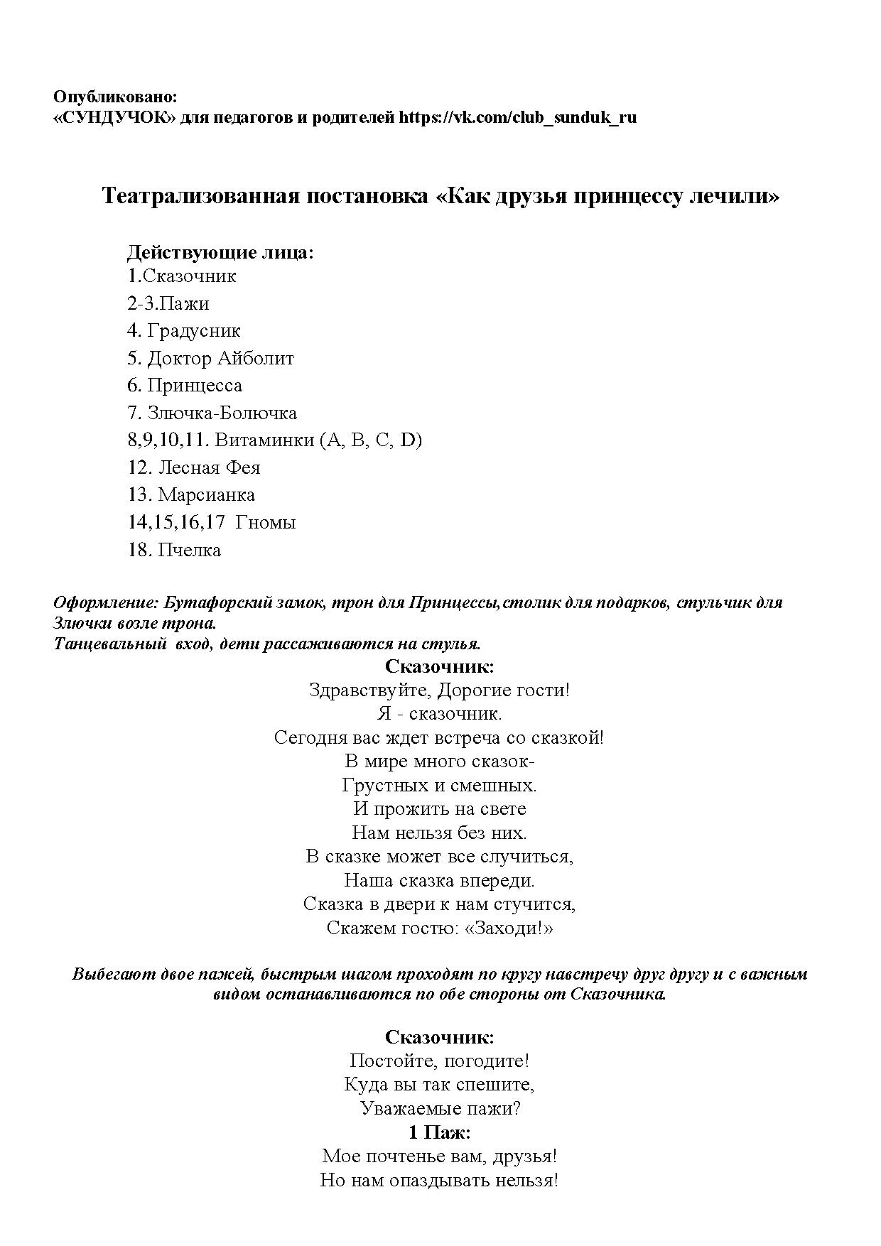 Cценарий театрализованной постановки для подготовительной группы детского сада " Как друзья принцессу лечили", который может быть использован для логопедического выпускного.