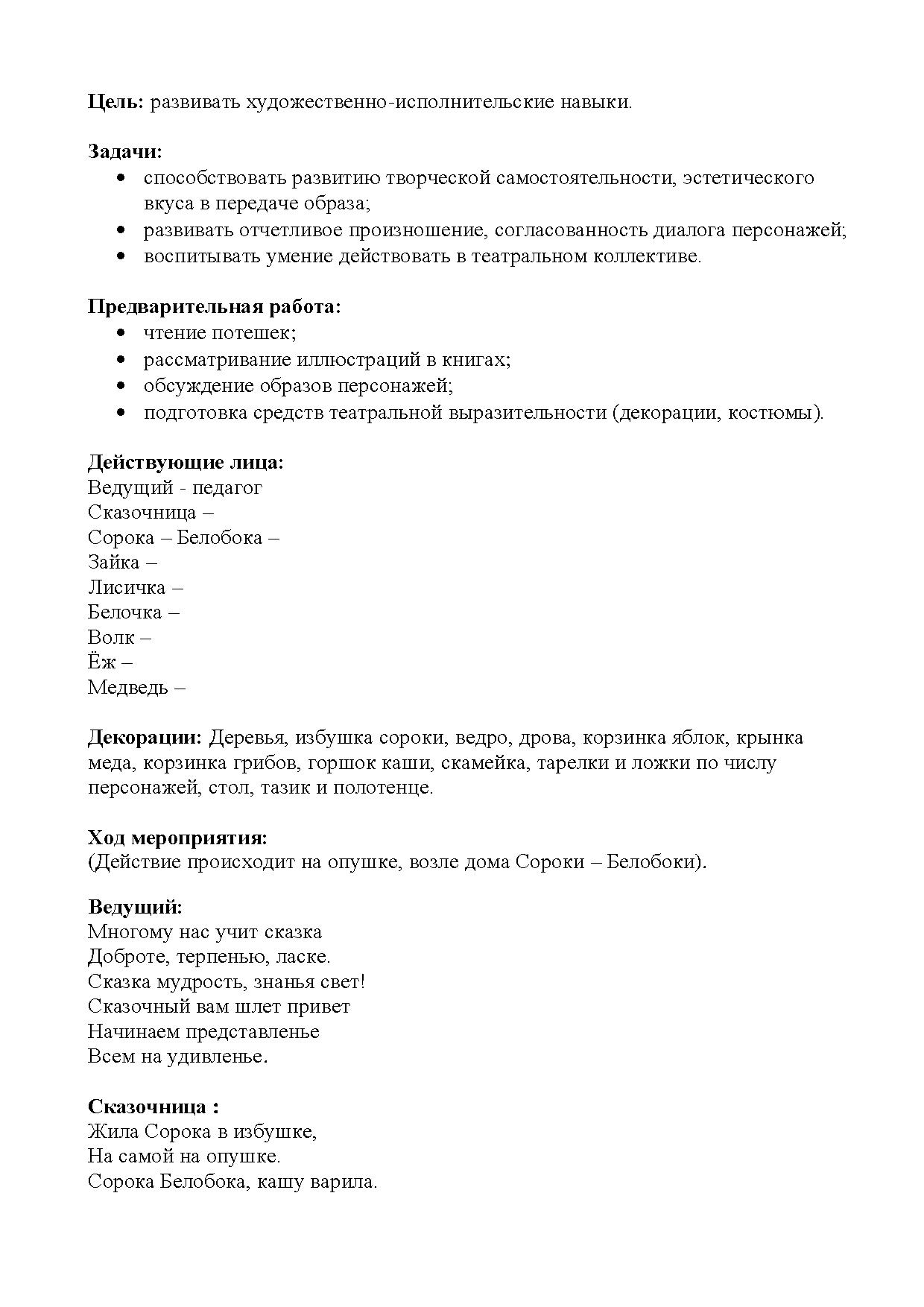 · развивать отчетливое произношение, согласованность диалога персонажей;