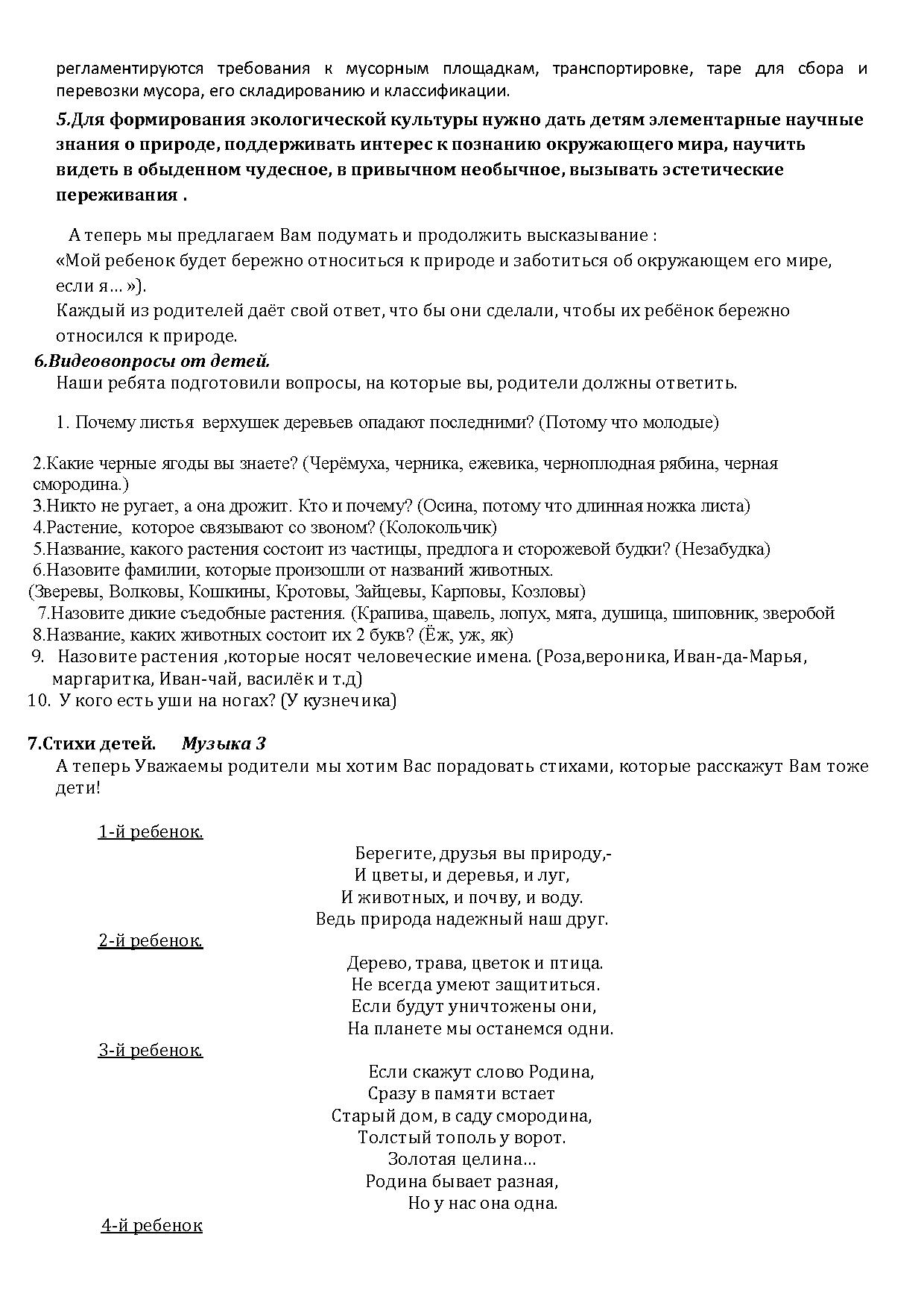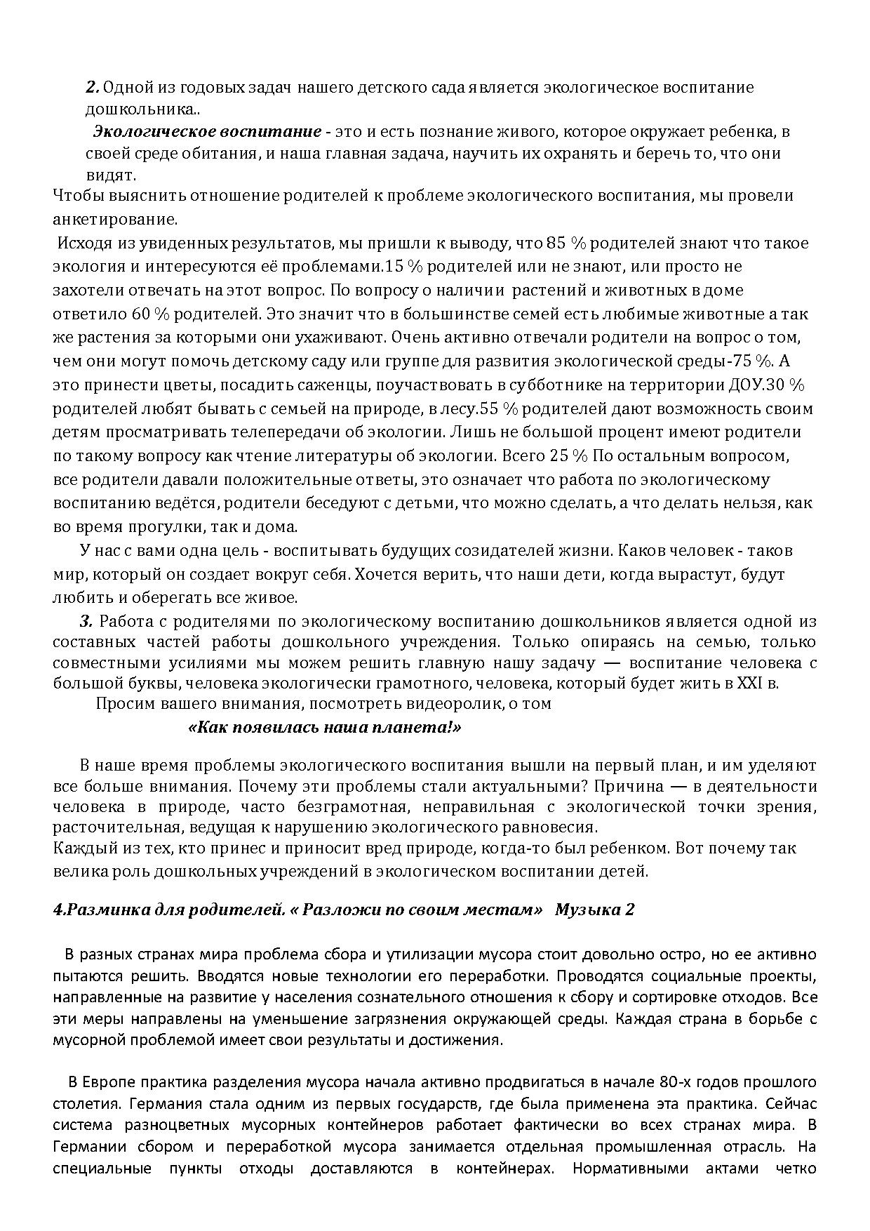 4. Вовлекать родителей в работу группы и детского сада по формированию экологической культуры дошкольников.