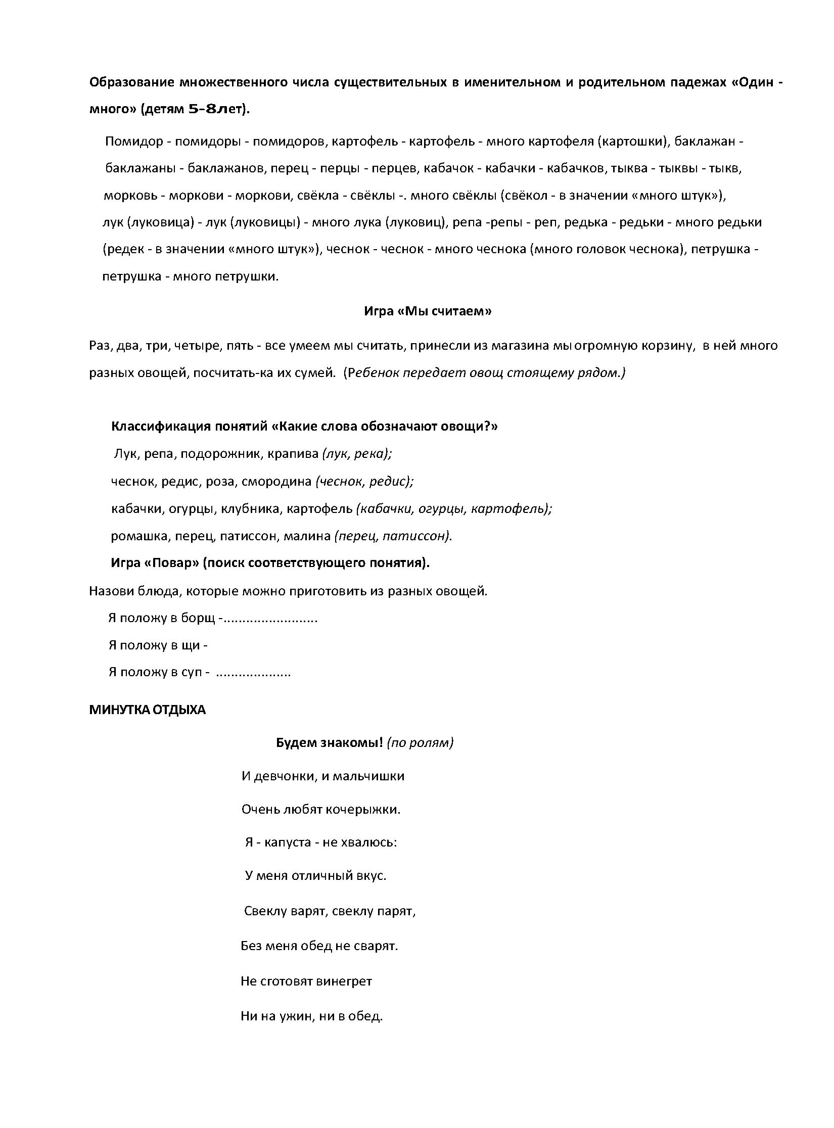 Конспект занятия по ознакомлению с окружающим миром и развитию речи в подготовительной к школе группе комбинированной направленности для детей по теме: «Овощи».