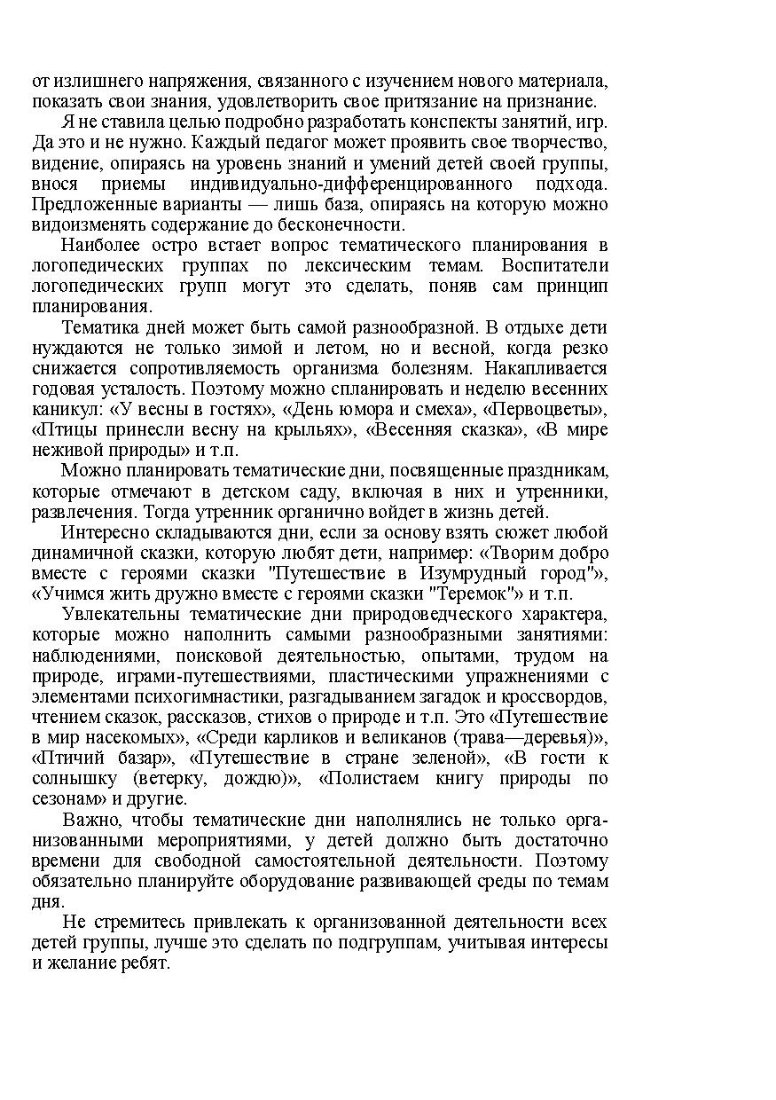Представленные в пособии тематические дни и недели, проводимые во время каникул и в течение года, помогут сделать жизнь детей в детском саду более интересной, разнообразной, занимательной. Творческие идеи послужат примером нестандартного мышления педагога, ухода от обыденности, штампов в работе с детьми второй младшей, средней, старшей и подготовительной к школе групп дошкольных образовательных учреждений.