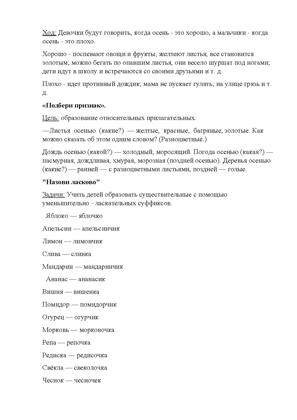 - пополнить и обогатить знания детей по лексическим темам: «Осень», «Овощи», «Фрукты»;