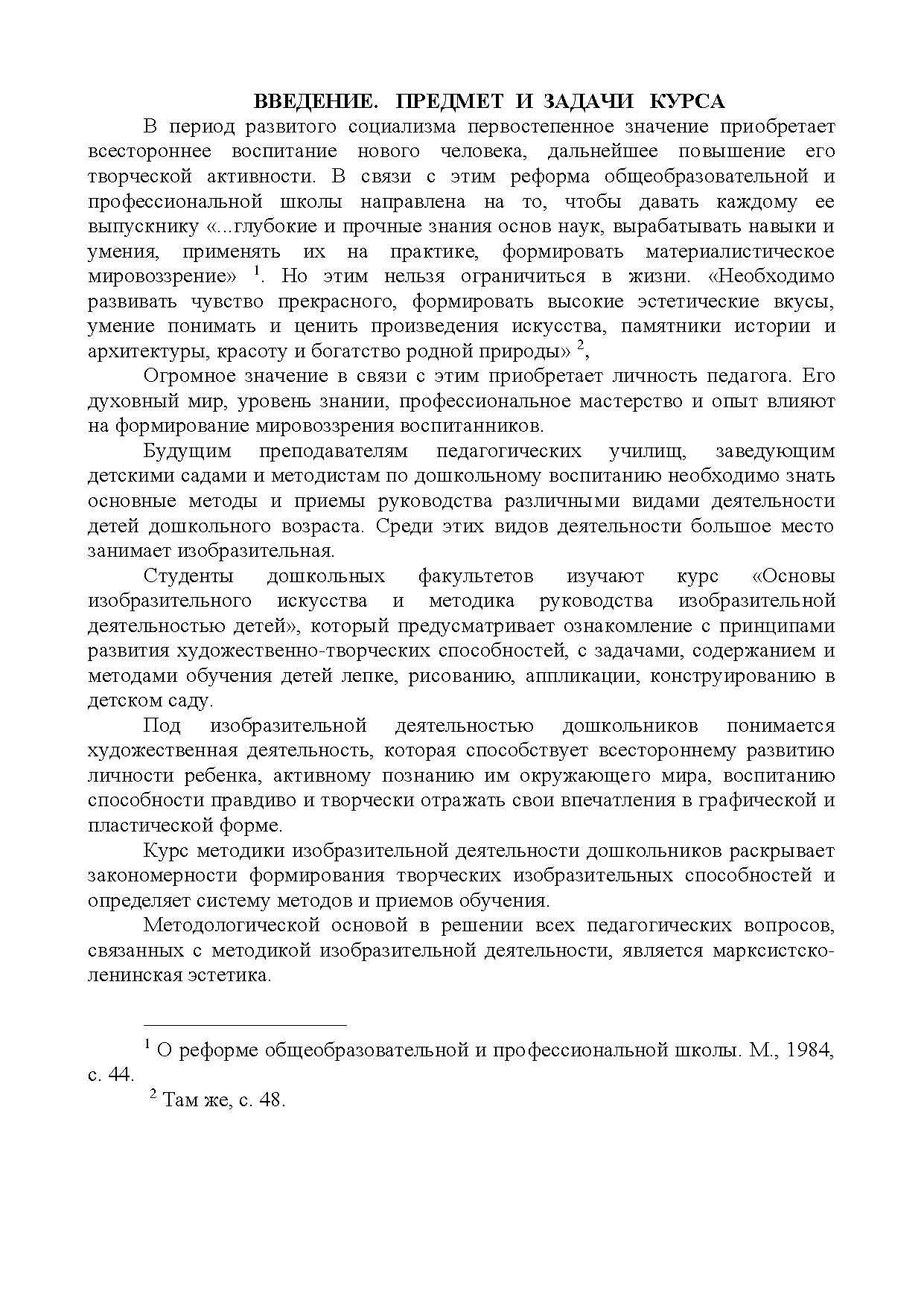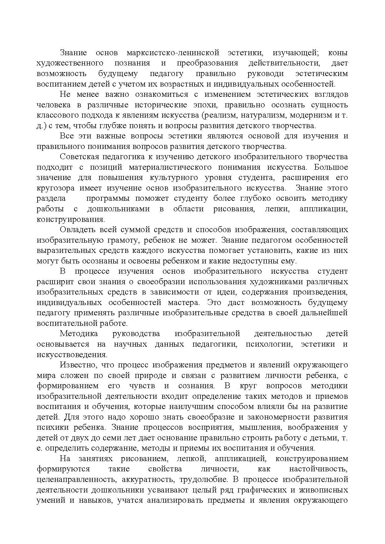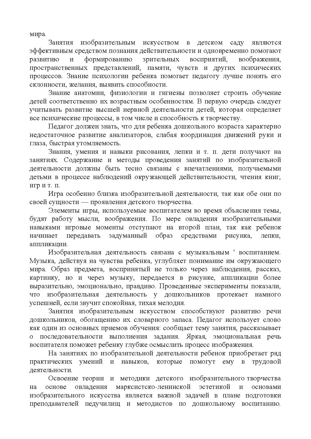 Эти занятия доставляют детям радость, создают положительный эмоциональный настрой, способствуют развитию творчества. В процессе художественной деятельности у детей развиваются эстетическое восприятие, образные представления и воображение, эстетические чувства (форма, цвет, композиция). Однако происходит это не само по себе, а при условии систематического, целенаправленного и вместе с тем тонкого и чуткого руководства педагога, учитывающего специфику изобразительного творчества ребёнка.