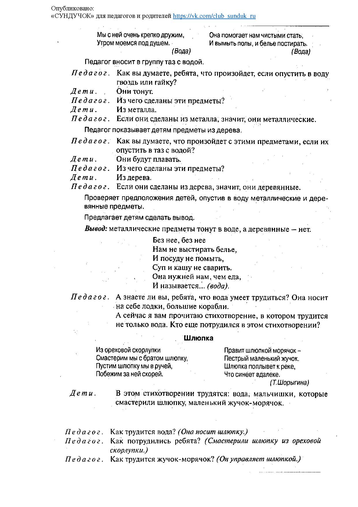1. Познакомить детей со свойствами воды (запах, отсутствие собственной формы, способность держать предметы).