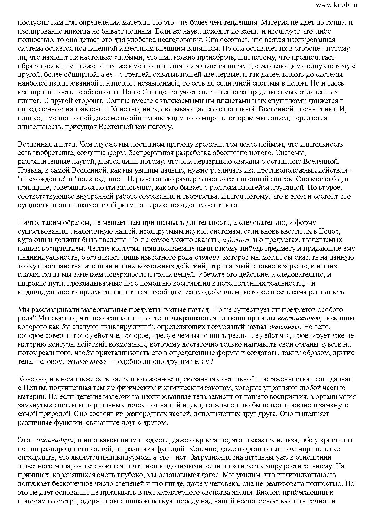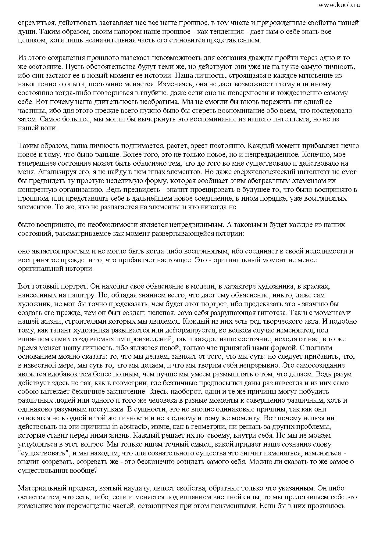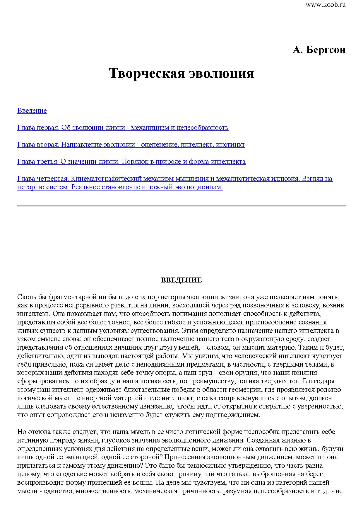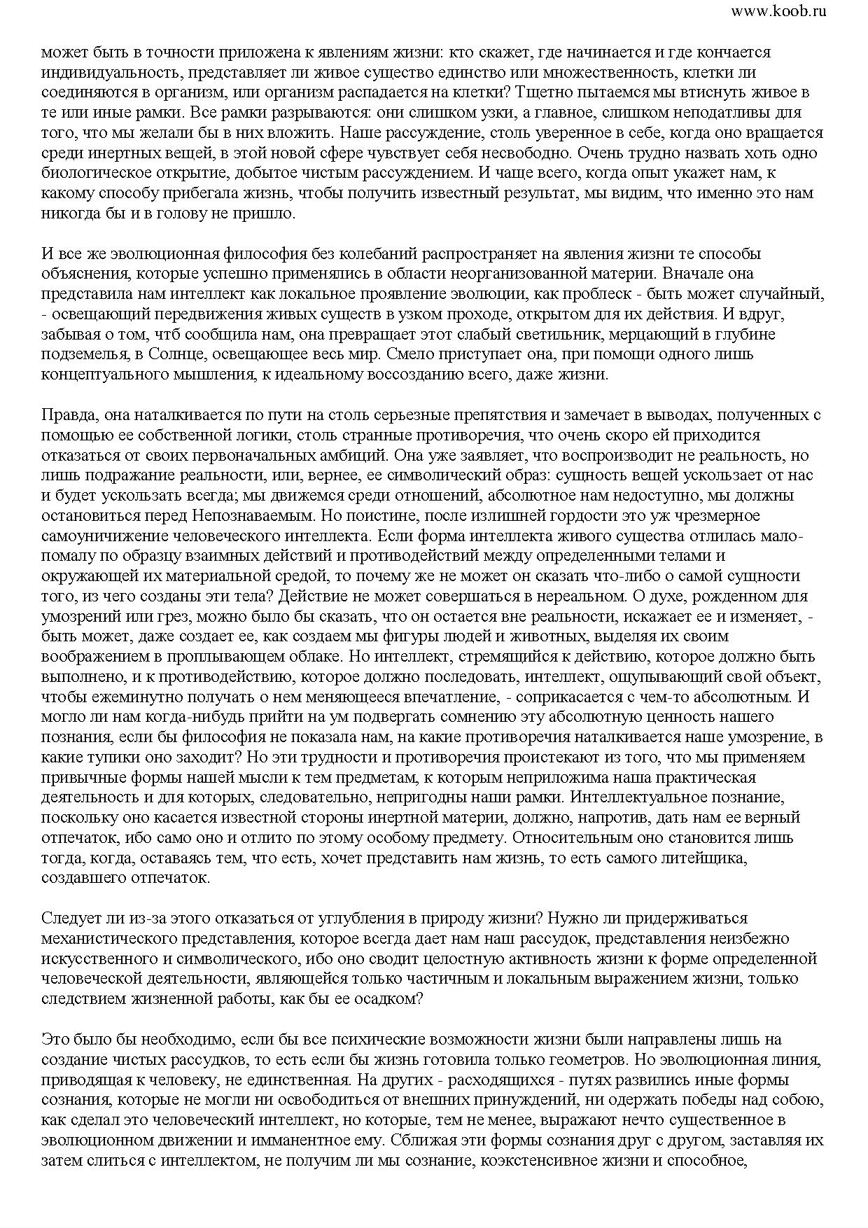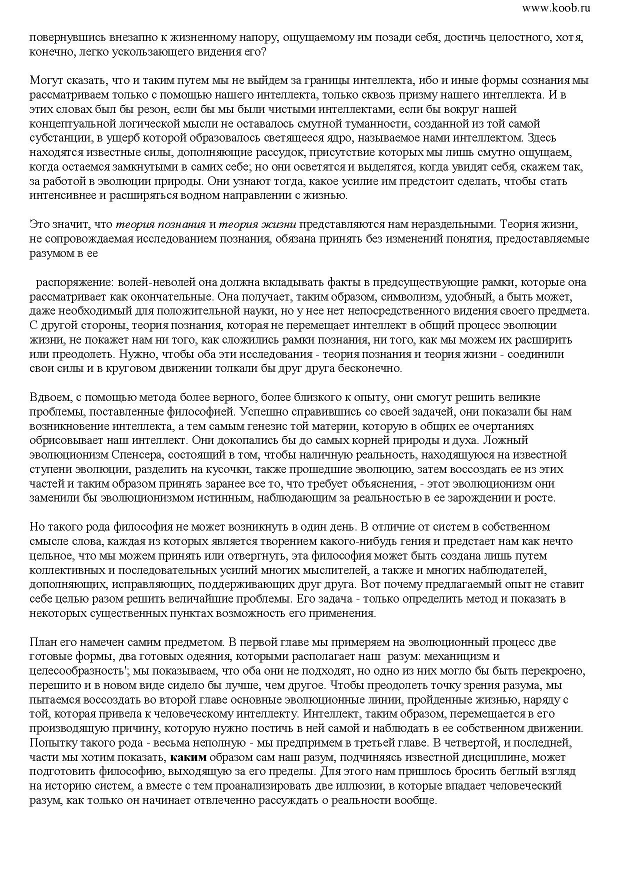 Постичь жизнь с помощью интеллекта невозможно, полагал он. Между тем, коснувшись столь тонкой материи, как творческая интуиция, он нашел немало закономерностей, которые будут интересны и для современного читателя, ведь каждый из нас - творец, да и миру вокруг нас свойственна творческая эволюция, которая тоже не случайна.