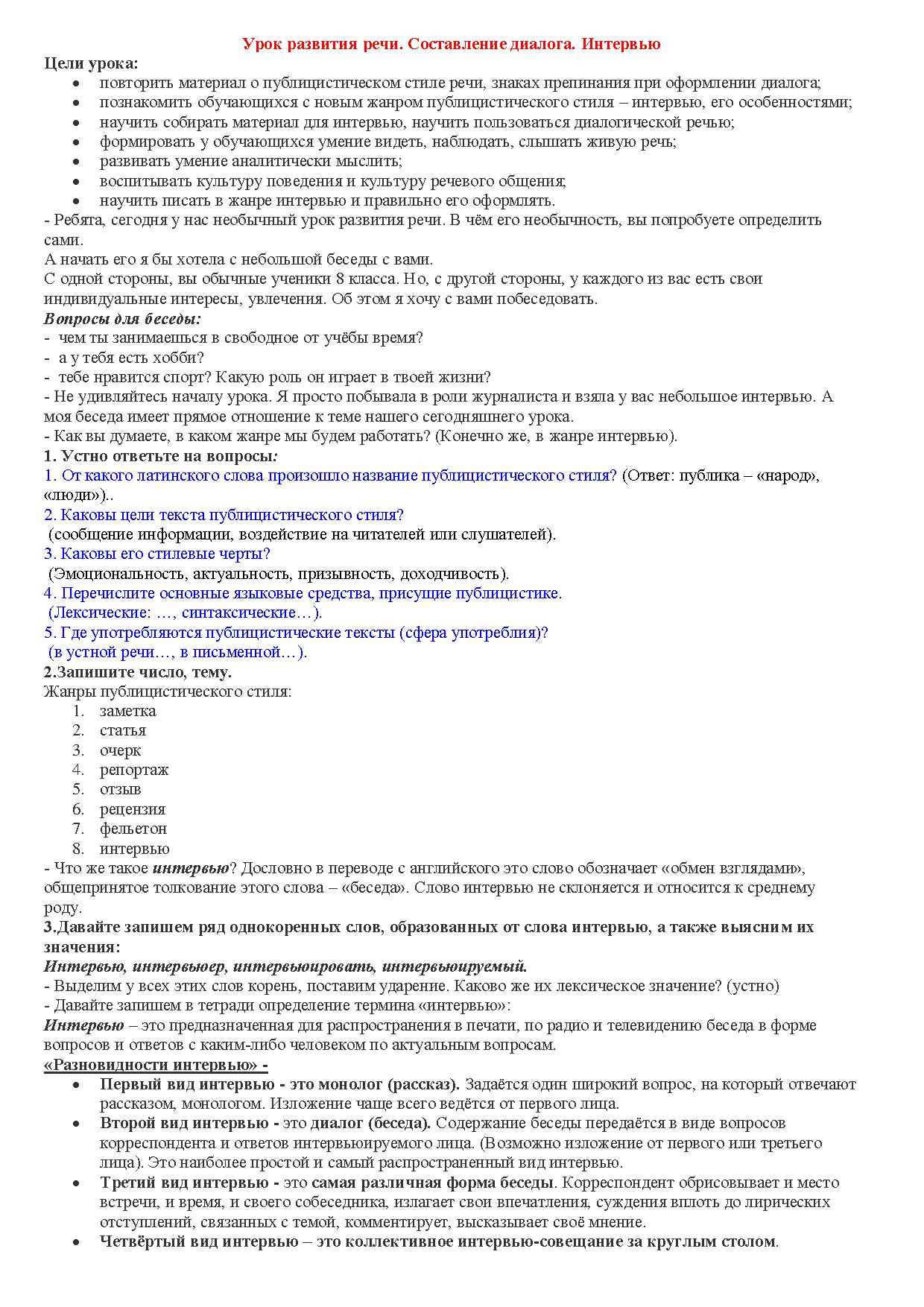 · познакомить обучающихся с новым жанром публицистического стиля – интервью, его особенностями;