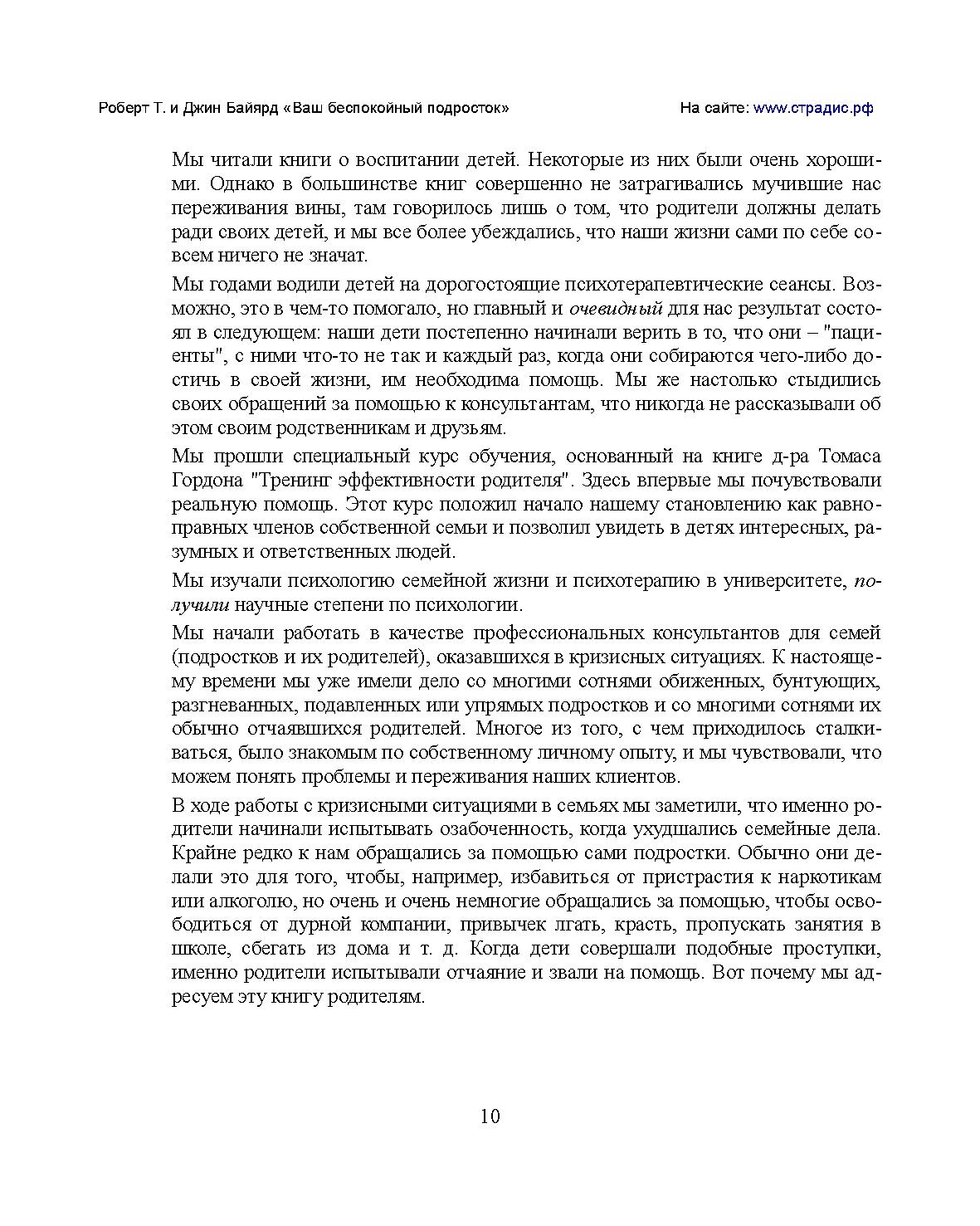 Джин и Боб Байярд работают вместе уже почти полвека. Будучи психологами, они занимаются совместной клинической практикой в Калифорнии. Вырастили пятерых детей. Когда их младшему ребенку исполнилось восемнадцать лет, у них был тридцатидвухлетний непрерывный стаж воспитания детей. К этому времени на своем личном опыте они пережили большинство тех проблем, которые обсуждаются в этой книге.