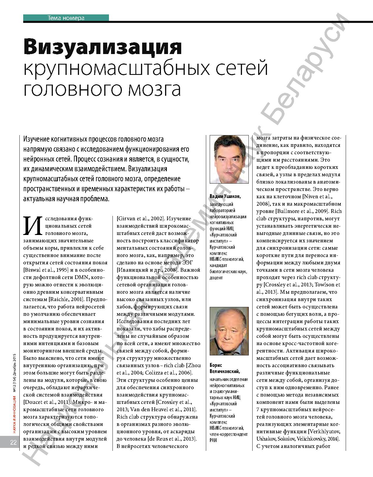 Процесс сознания и является, в сущности, их динамическим взаимодействием. Визуализация крупномасштабных сетей головного мозга, определение пространственных и временных характеристик их работы– актуальная научная проблема.