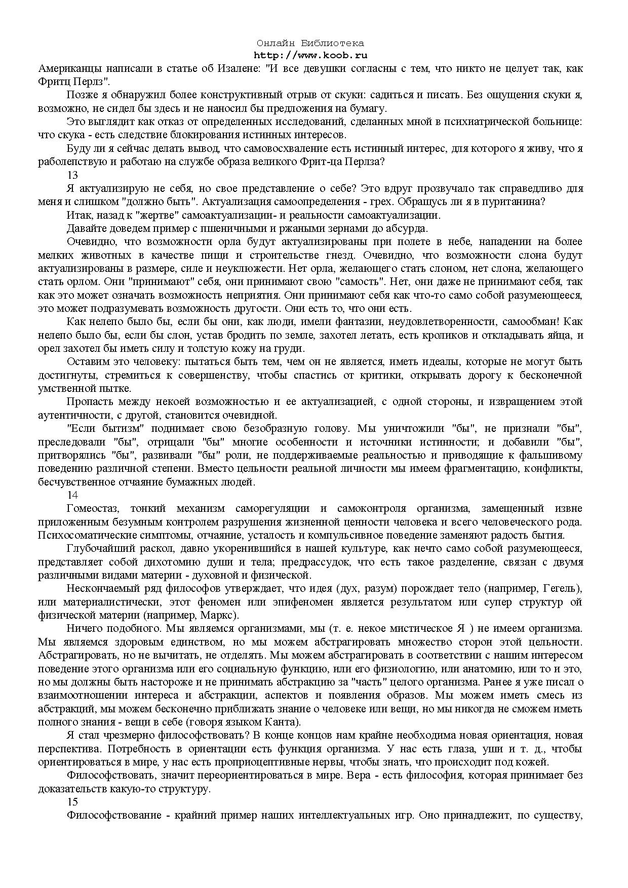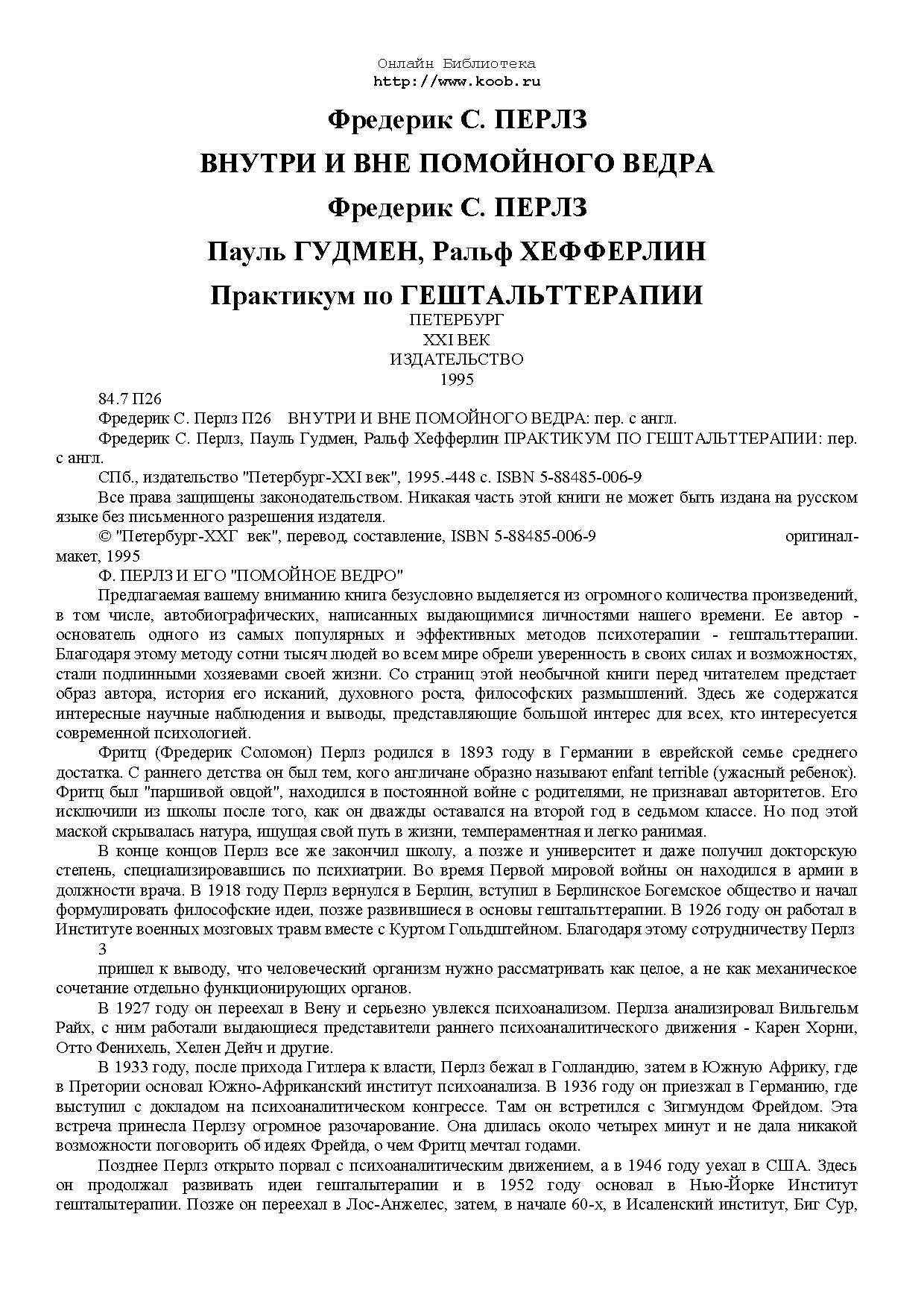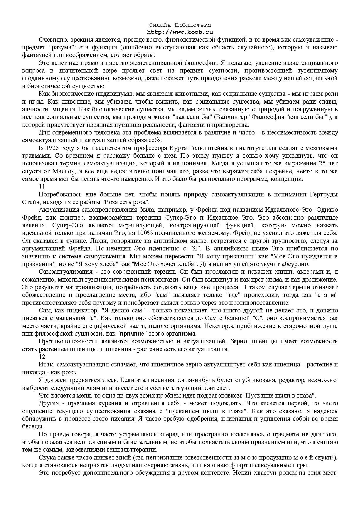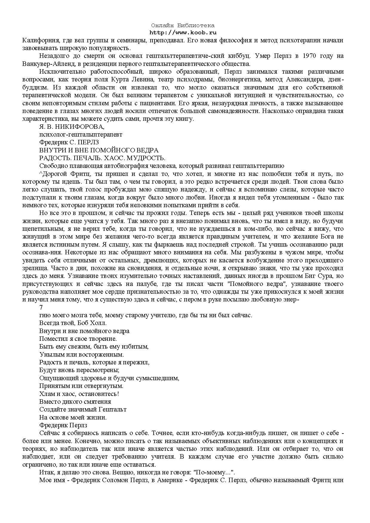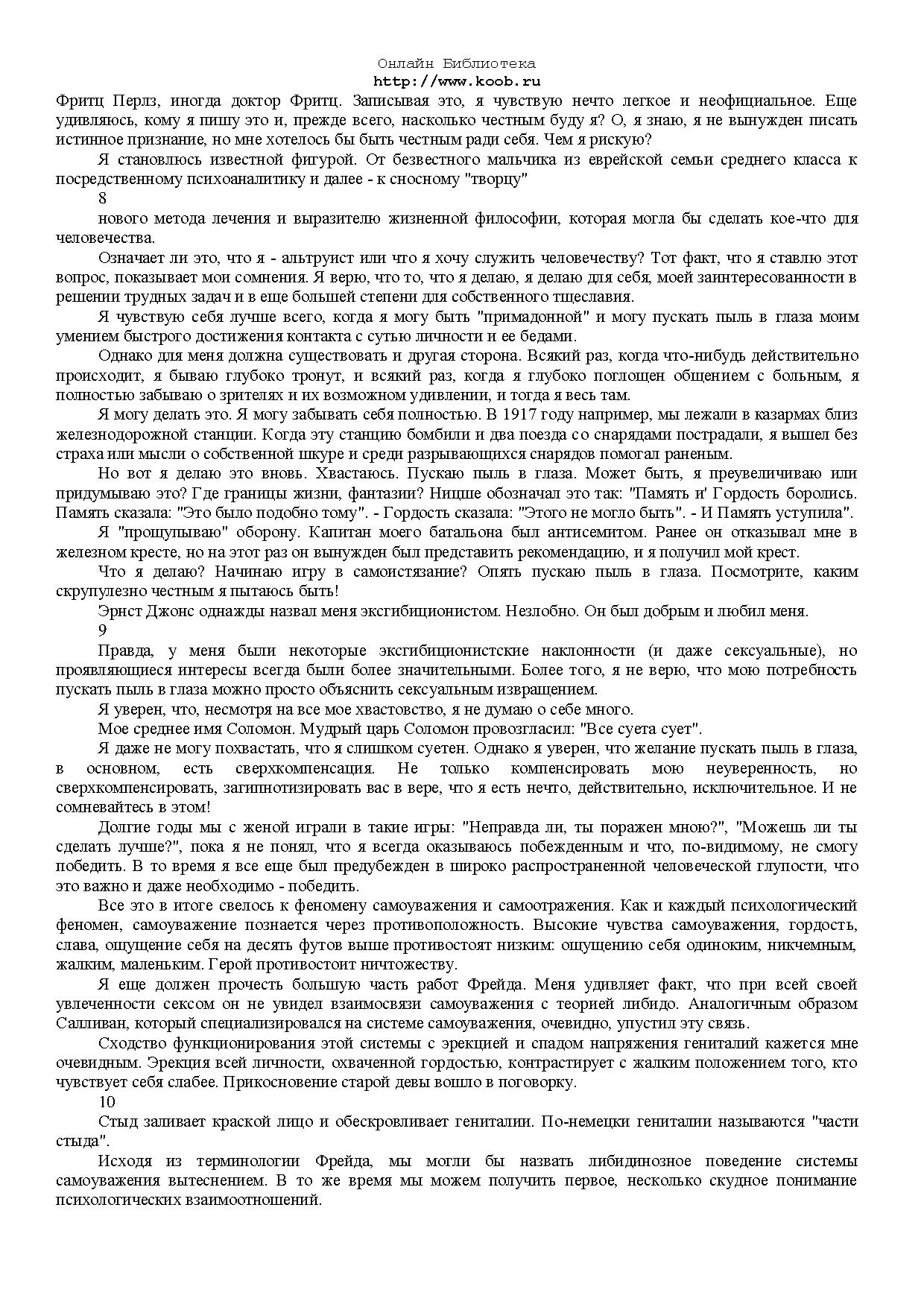 Предлагаемая вашему вниманию книга безусловно выделяется из огромного количества произведений, в том числе, автобиографических, написанных выдающимися личностями нашего времени. Ее автор - основатель одного из самых популярных и эффективных методов психотерапии - гештальттерапии.