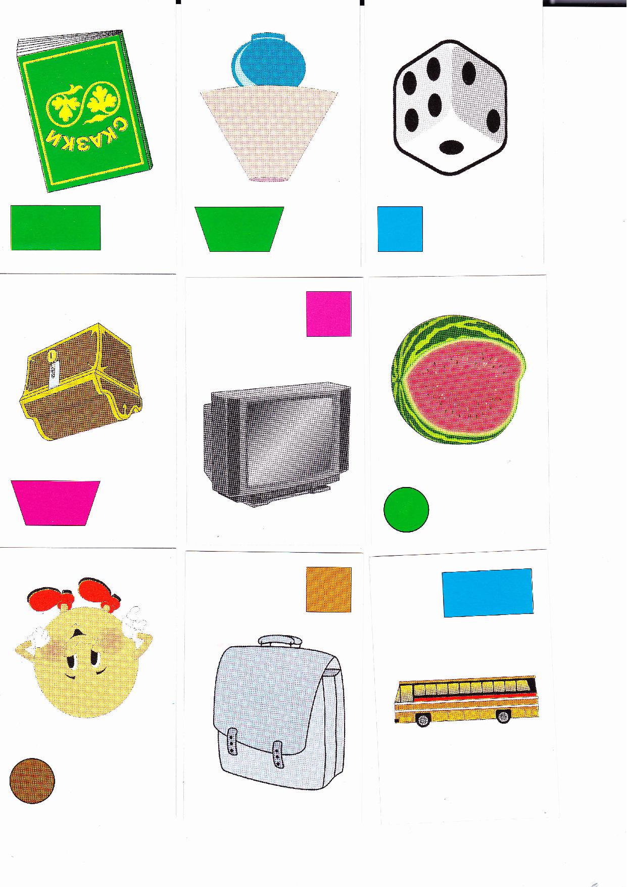 Перед Вами занимательная игра для детей дошкольного возраста, которая поможет им развить зрительное восприятие, внимание, память, мышление, а также закрепить знания основных цветов и геометрических предметов (круге, квадрате, овале, прямоугольнике, трапеции и треугольнике).