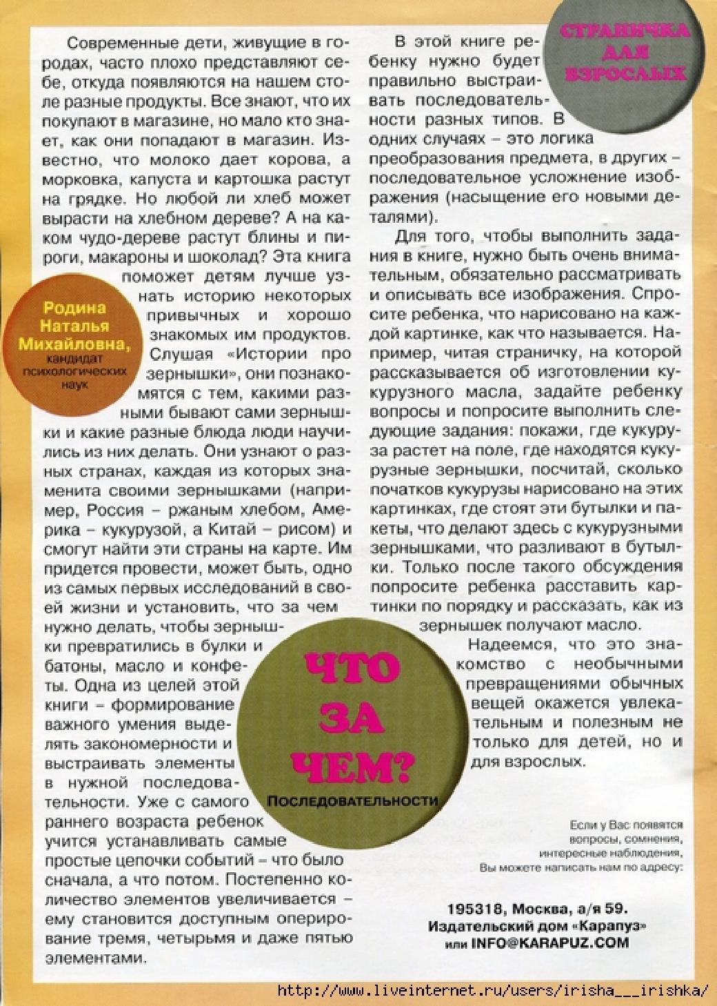 Слушая "Истории про зернышки", они познакомятся с тем, какими разными бывают сами зернышки и какие разные блюда люди научились из них делать. Они узнают о разных странах, каждая из которых знаменита своими зернышками (например, Россия - ржаным хлебом, Америка - кукурузой, а Китай - рисом) и смогут найти эти страны на карте.