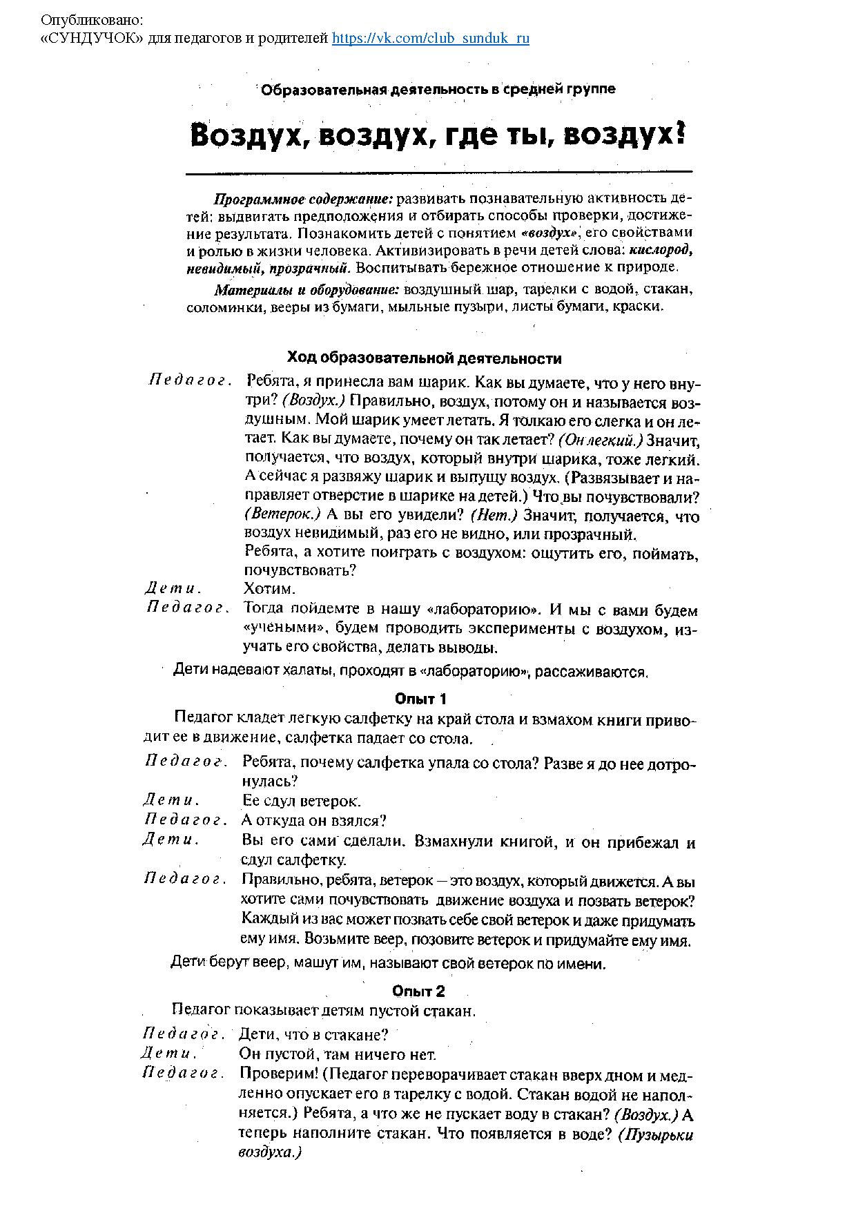 - познакомить детей с понятием «воздух», его свойствами и ролью в жизни человека;
