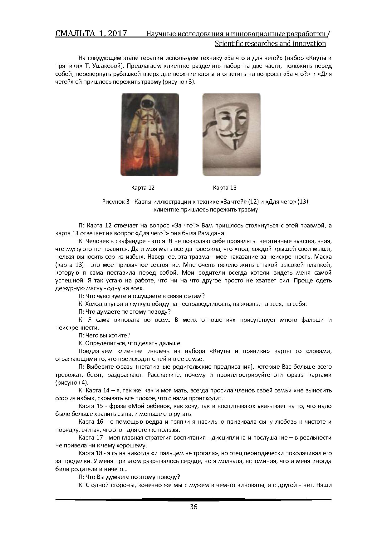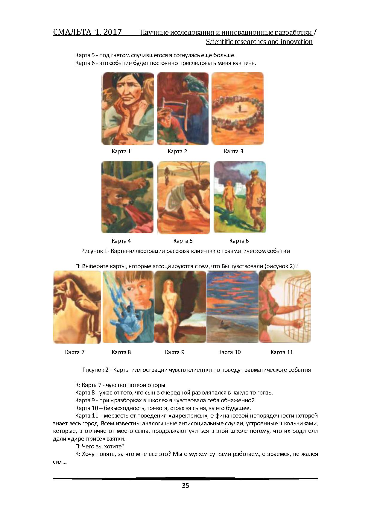 Авторы раскрывают методологические основы работы с ассоциативными картами, а также приводят общий алгоритм использования карт в процессе психотерапевтического взаимодействия с клиентом. Помимо теоретического анализа в статье описаны конкретные примеры из практики, что повышает уровень ее практической ценности.