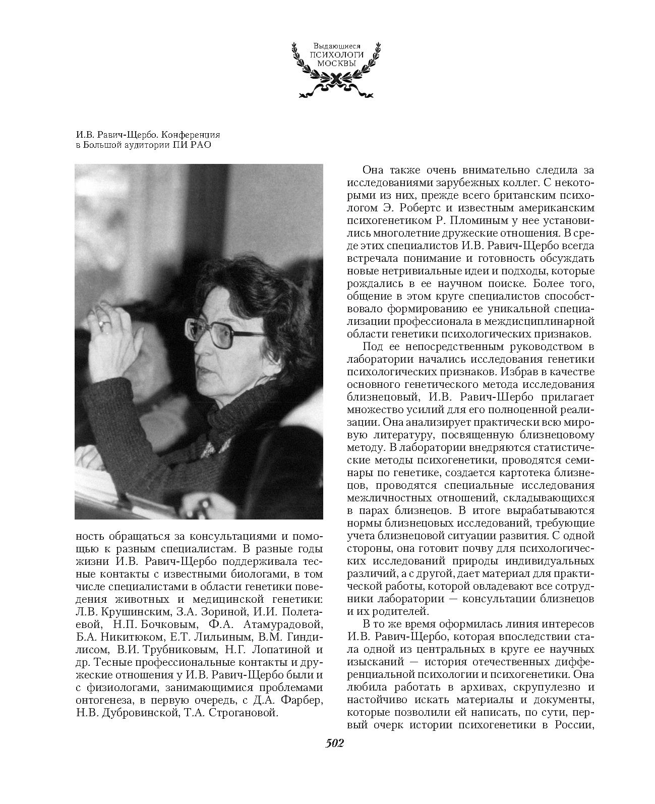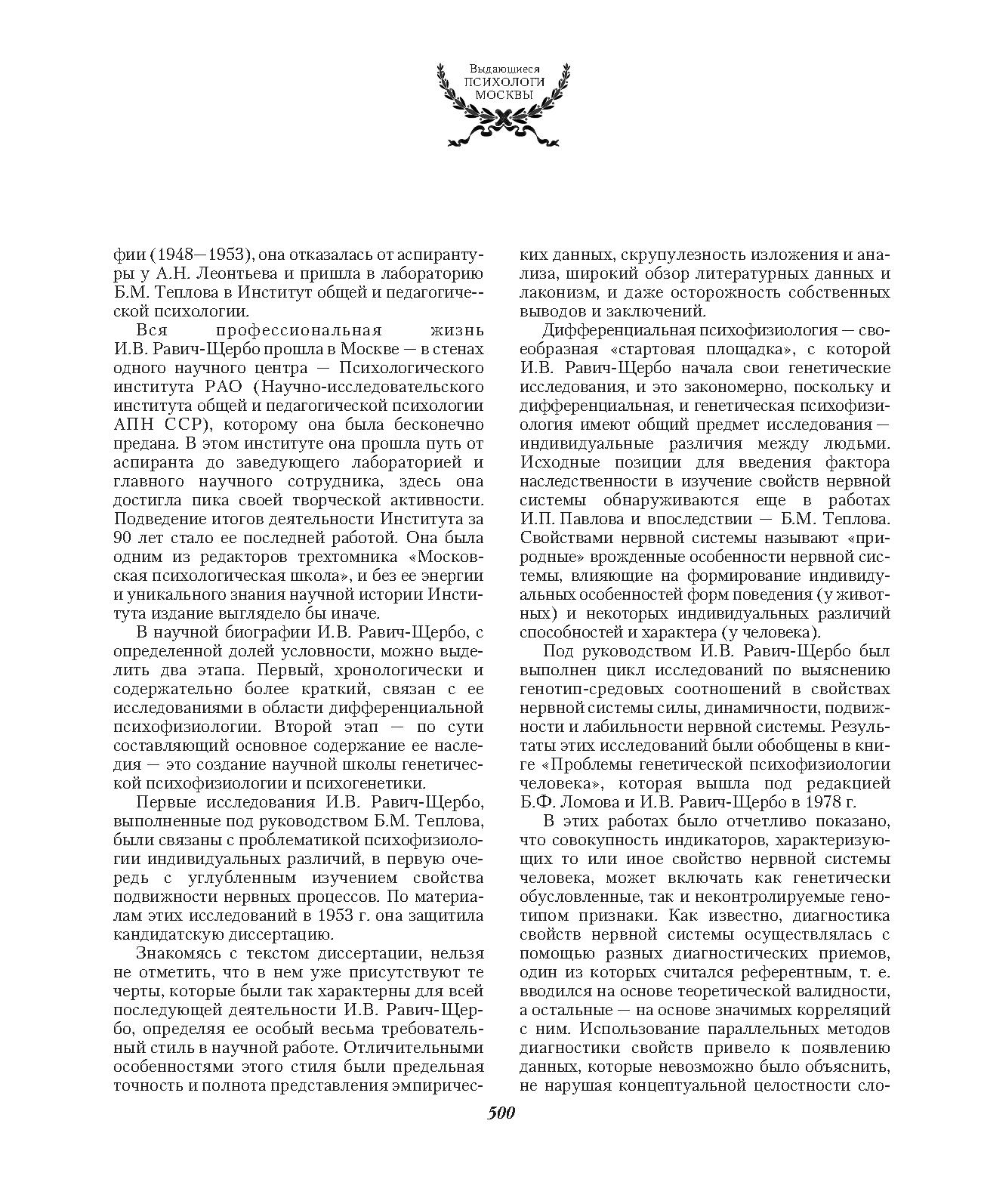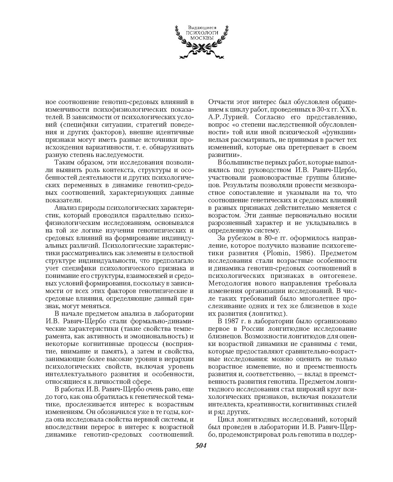 В 1972 г. в Институте общей и педагогической психологии Академии педагогических наук СССР (ныне Психологический институт Российской академии образования) была создана лаборатория психогенетики под руководством И.В. Равич - Щербо Работали там в основном ученики известных отечественных психологов Б.М. Теплова и В.Д. Небылицына.