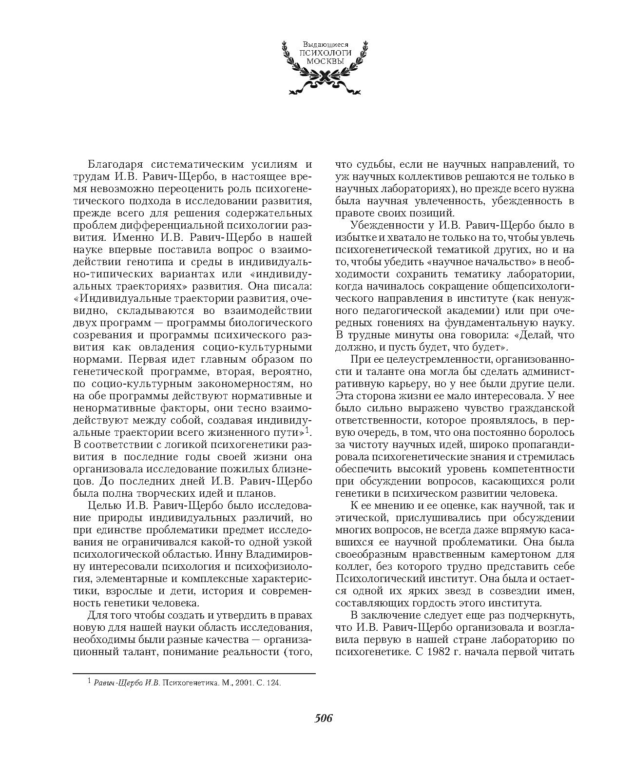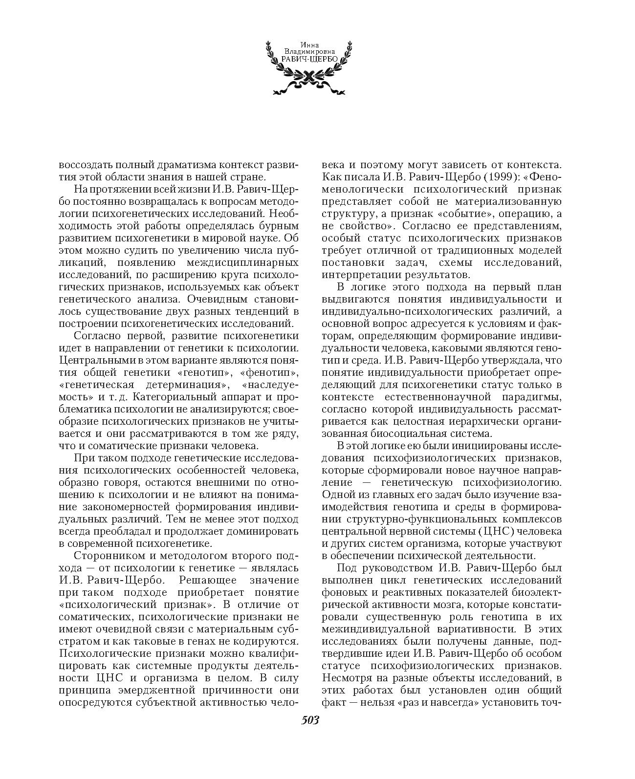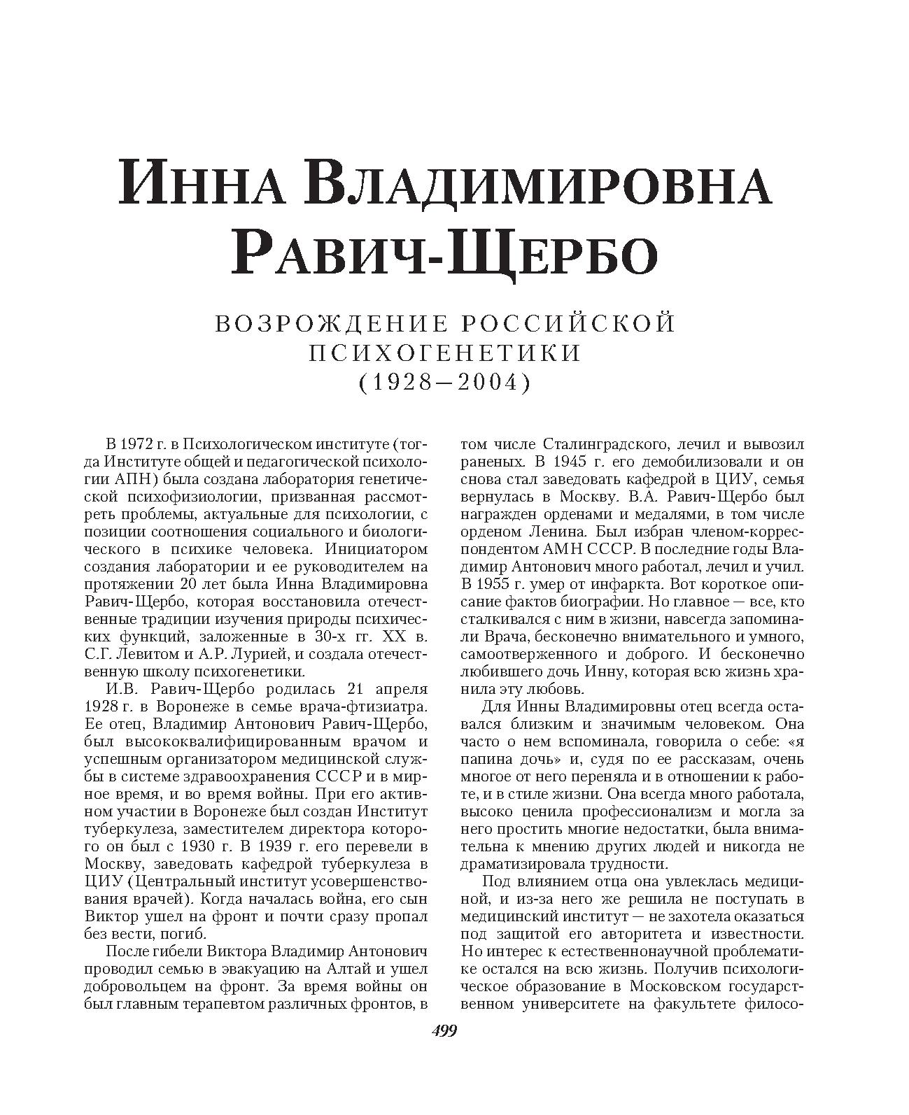 В 1972 г. в Институте общей и педагогической психологии Академии педагогических наук СССР (ныне Психологический институт Российской академии образования) была создана лаборатория психогенетики под руководством И.В. Равич - Щербо Работали там в основном ученики известных отечественных психологов Б.М. Теплова и В.Д. Небылицына.