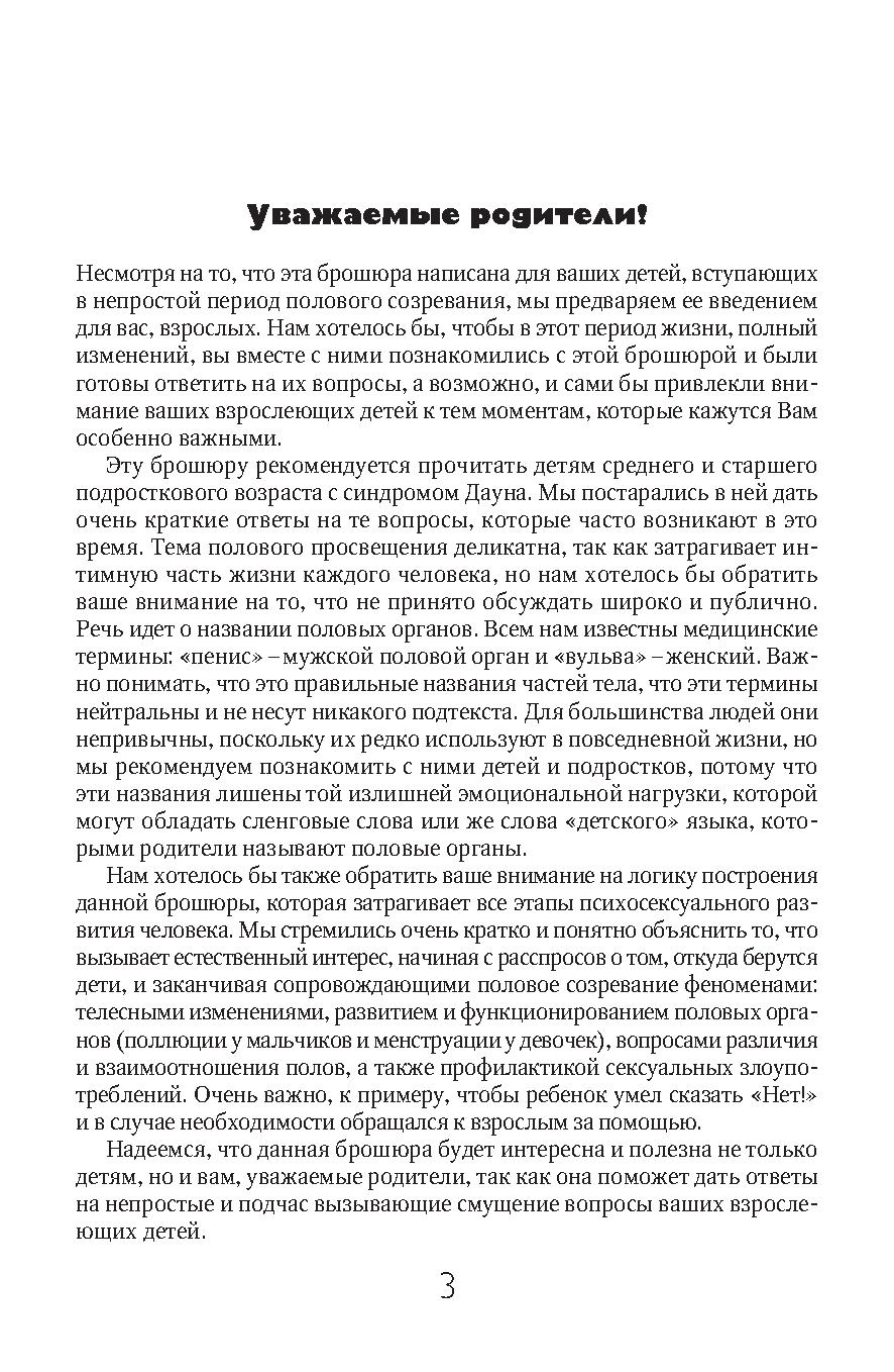 Родителям также стоит познакомиться с текстом брошюры, поскольку она поможет им доступно объяснить то, что часто вызывает смущение у нас, взрослых, но совершенно необходимо знать подрастающим детям.