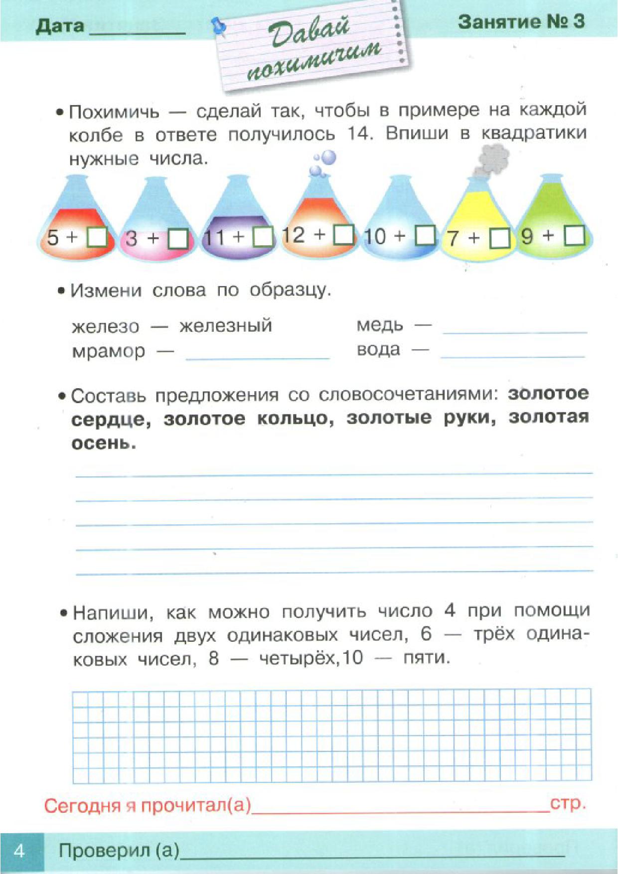 В издании собраны задания по математике, русскому языку, окружающему миру, а также интересные, полезные ребусы и головоломки.