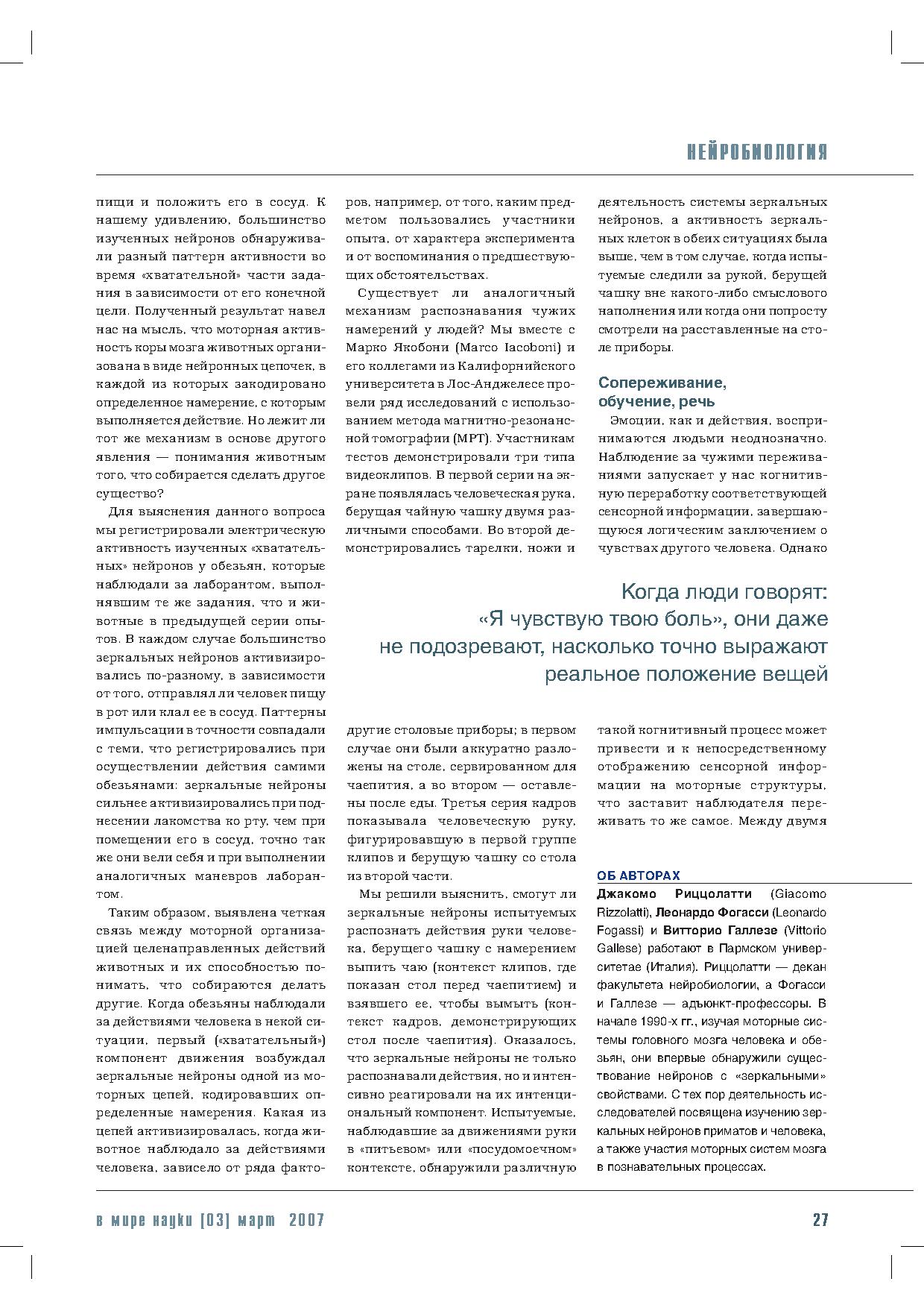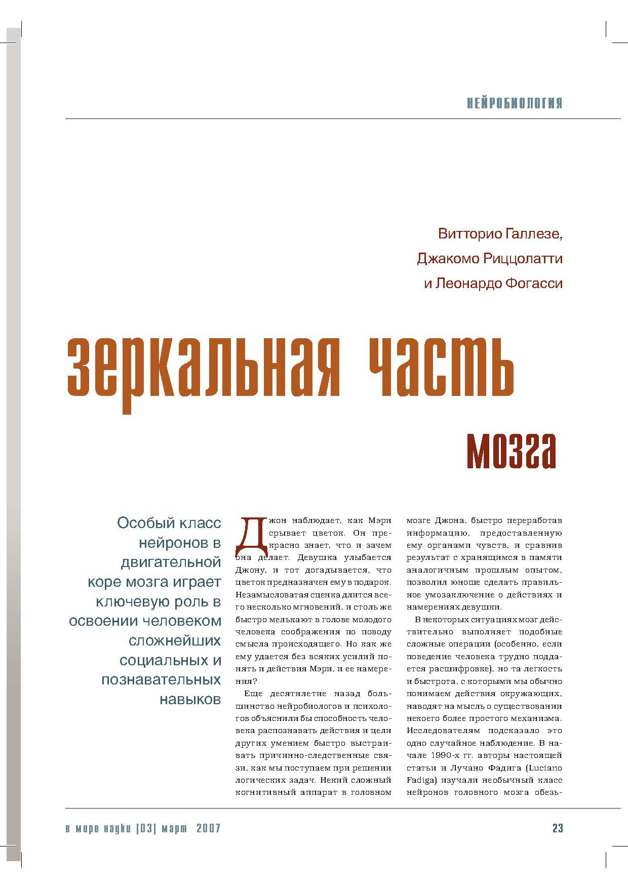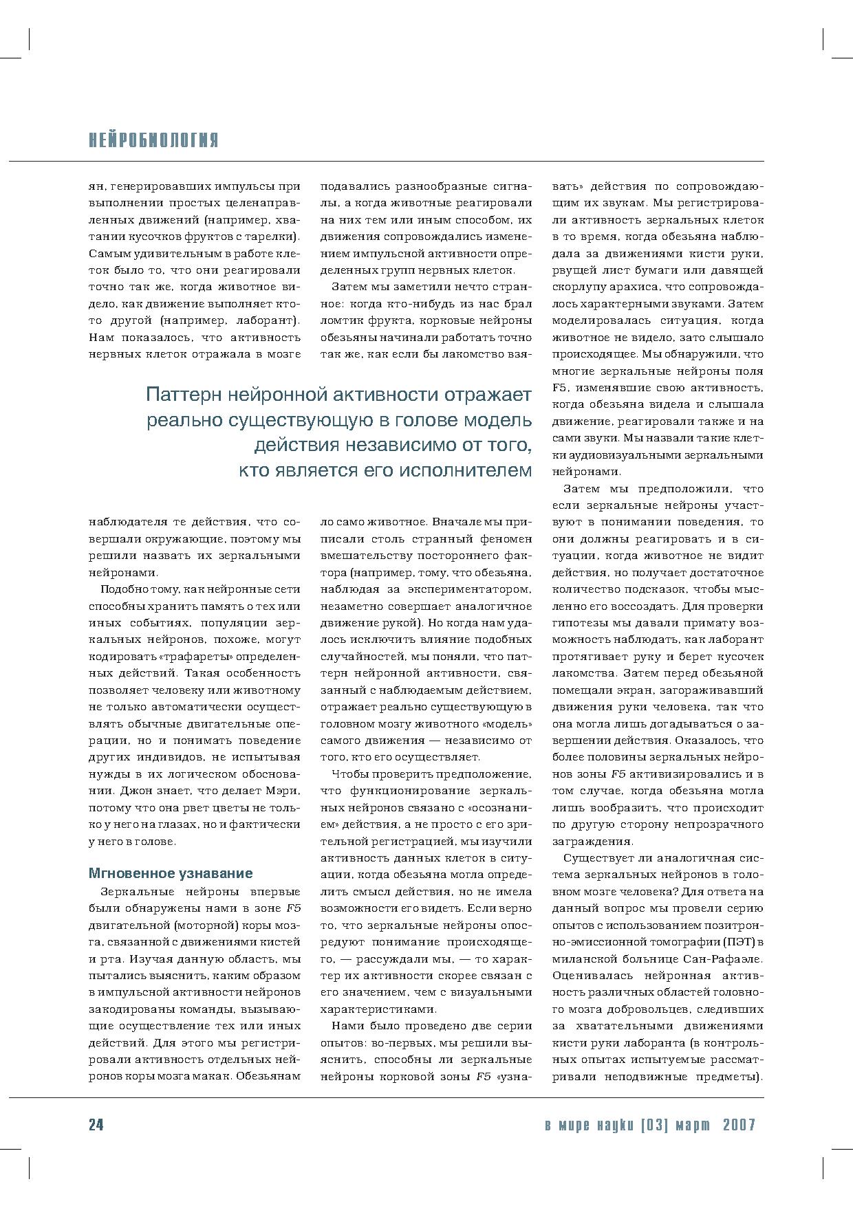 Особый класс нейронов в двигательной коре мозга играет ключевую роль в освоении человеком сложнейших социальных и познавательных навыков.