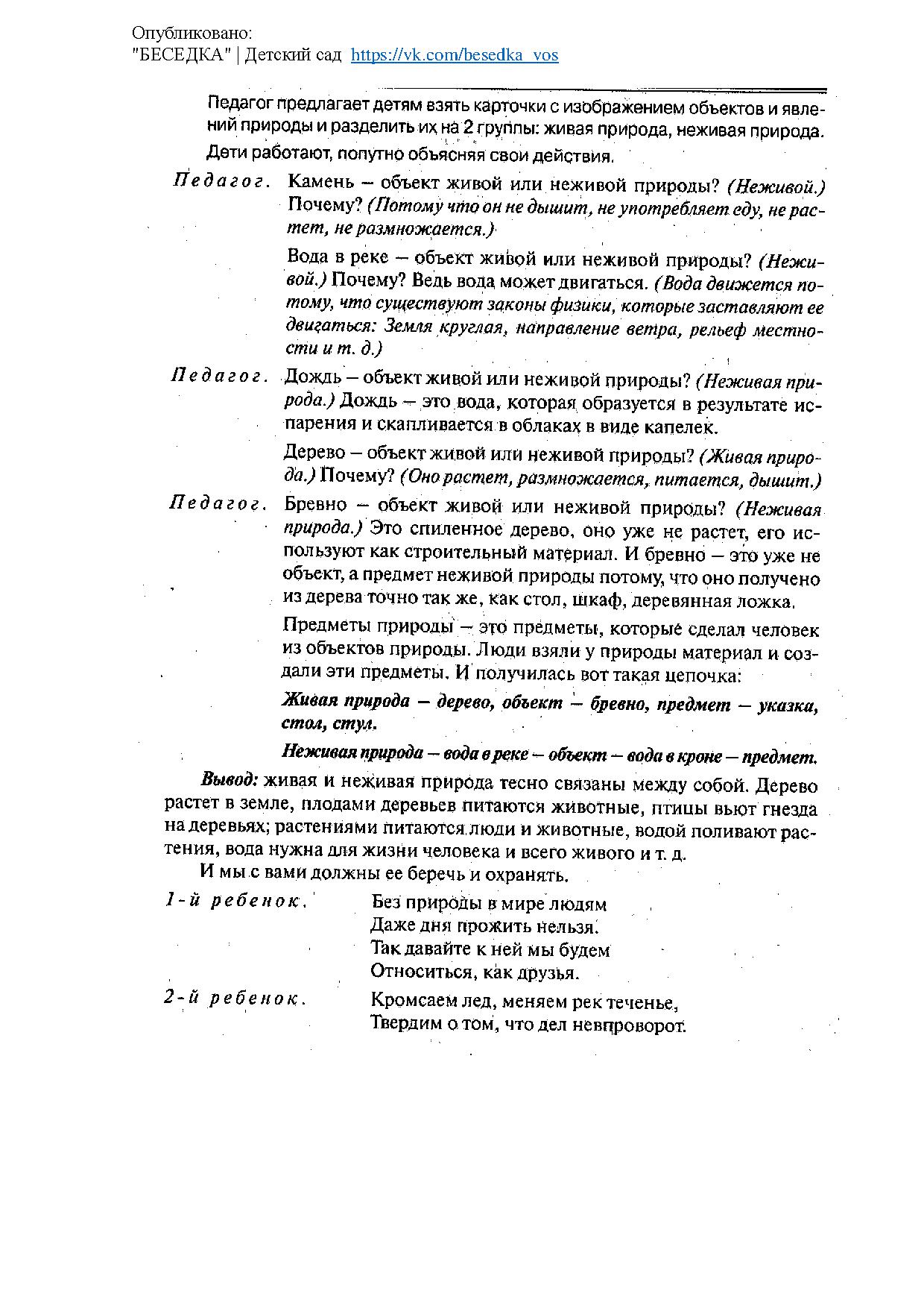 • Упражнять в назывании и классификации объектов живой и неживой природы.