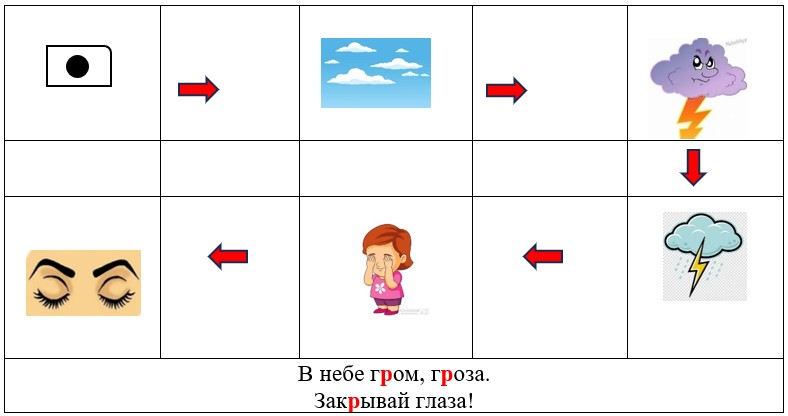 - Мнемотаблицы – схемы для запоминания текстов (чистоговорок, стихов).