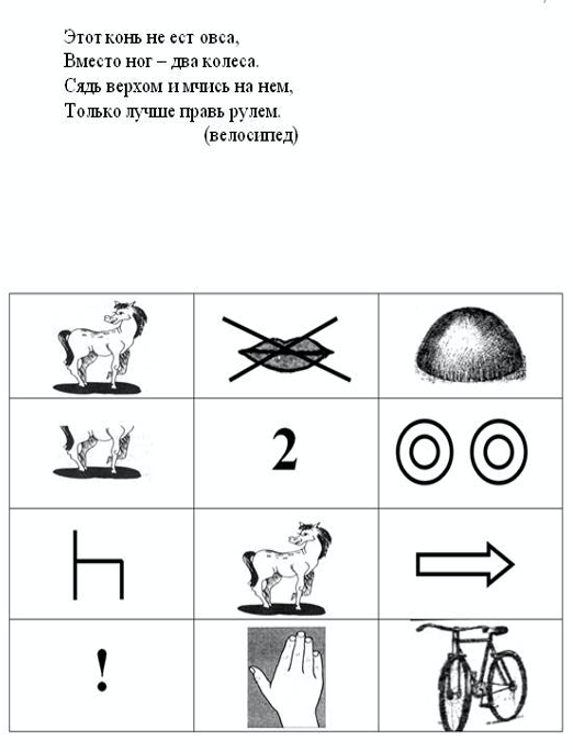 Загадки, которые соединены с мнемотаблицей, также способствуют развитию наглядно-образного мышления, в итоге ребенок лучше осмысливает содержание. Отгадывание загадок обогащает словарный запас, дети начинают понимать, что слово может иметь не только одно значение, что есть прямой и переносный смысл.